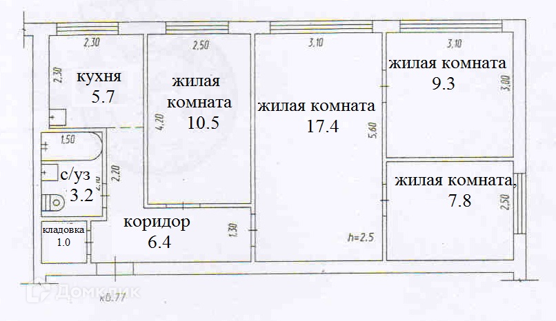 Высота потолков 2.5 м