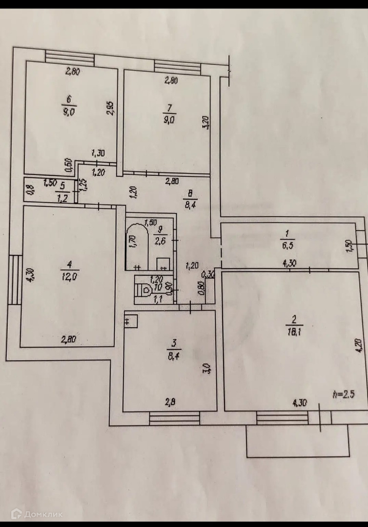 Высота потолков 2.5 м