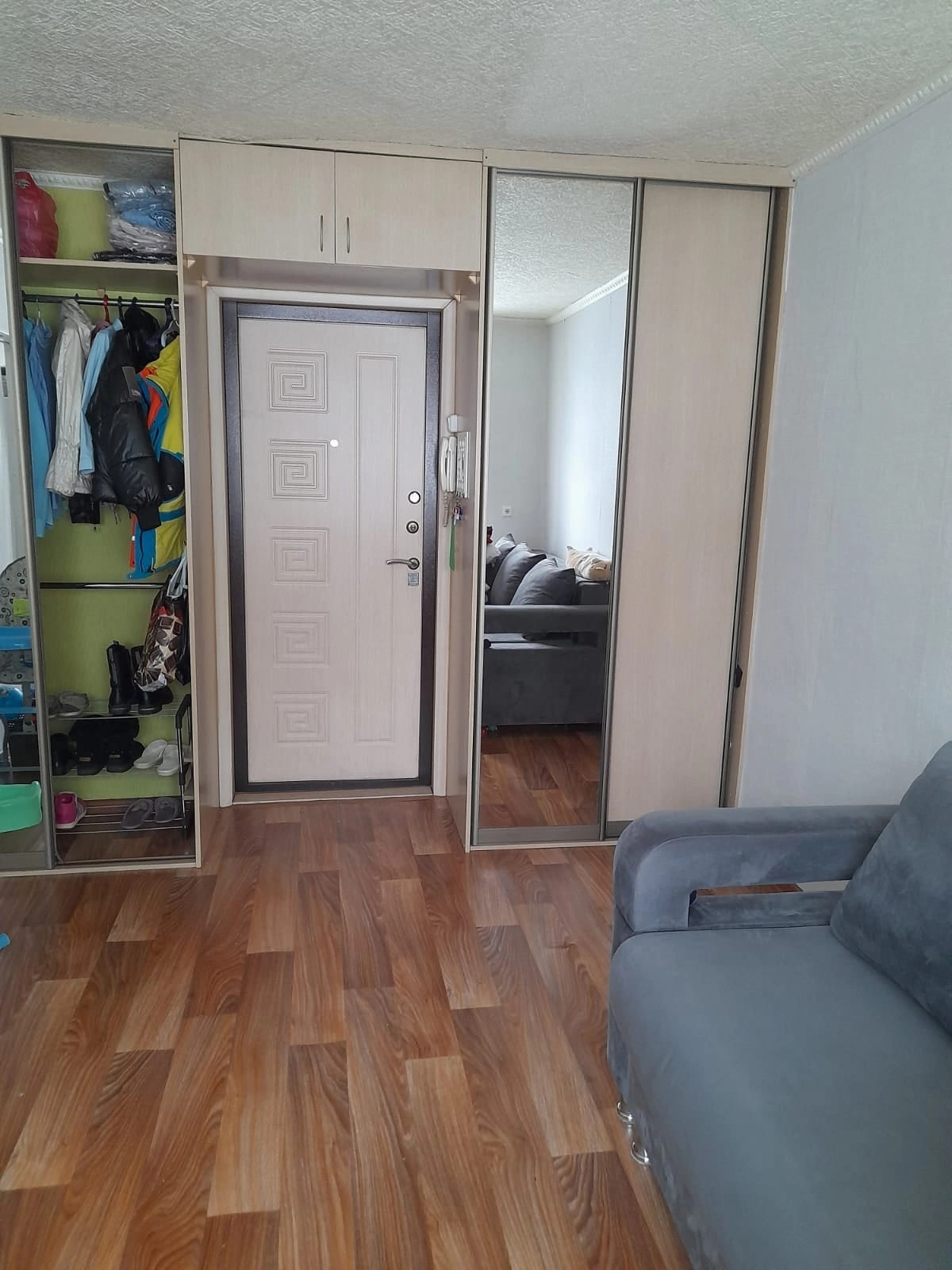 В квартире остаётся встроенный шкаф купе с  зеркалами, жалюзи и маскитные сетки покупались в прошлом году, мойка.