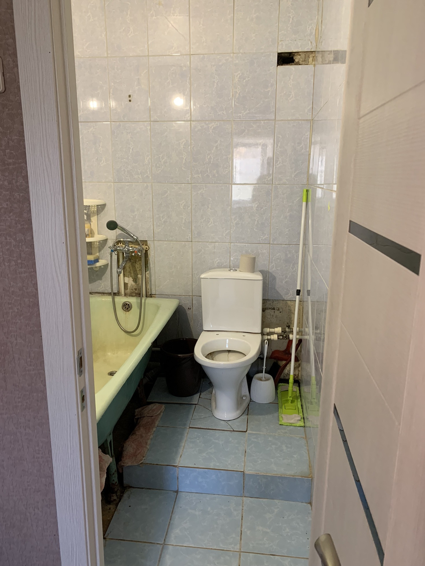 Санузел совмещен, стены и пол - керамическая плитка, пластиковые трубы