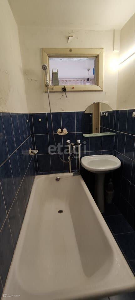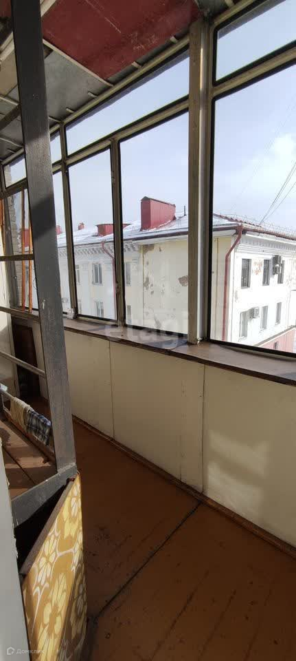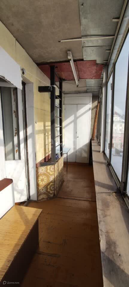 Санузел совмещён, выложен кафелем, на пол постелен ДВП. окна деревянные, очень большая, застеклённая лоджия.
