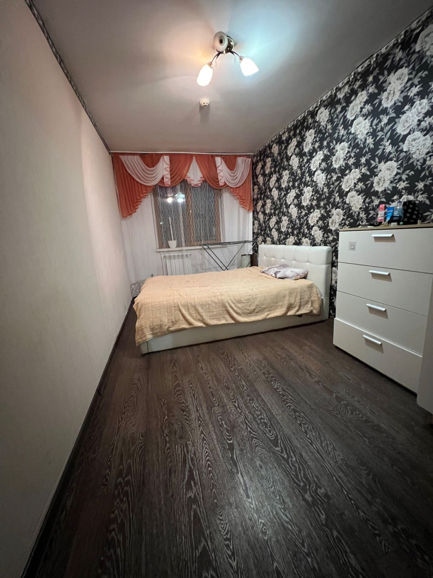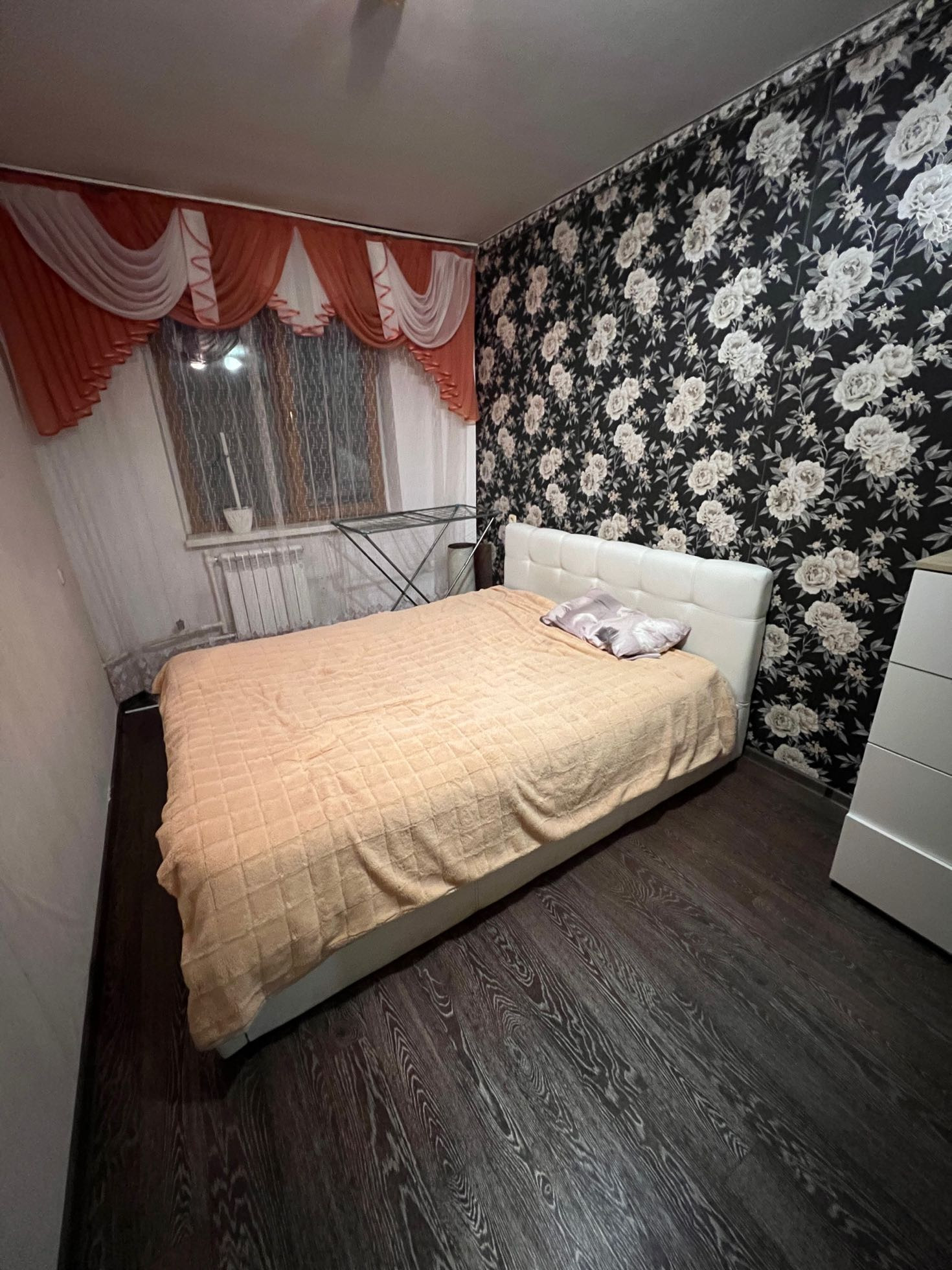 В квартире остаётся большая двухспальная кровать с кожаным изголовьем , по договоренности может остаться и другая мебель.