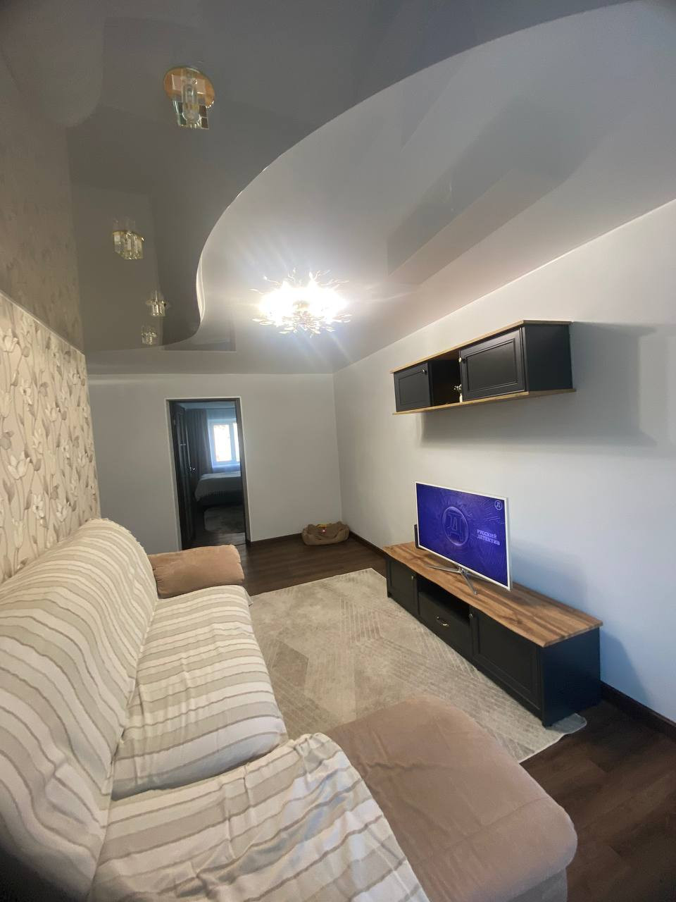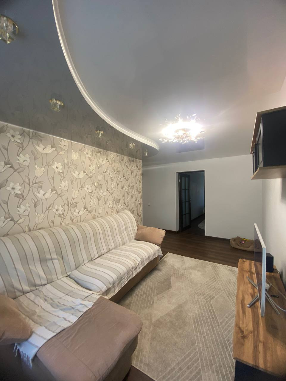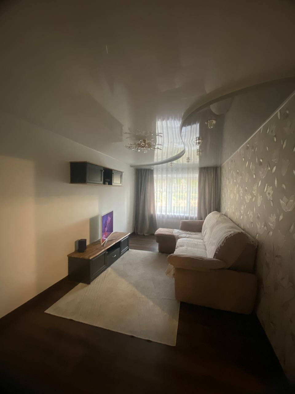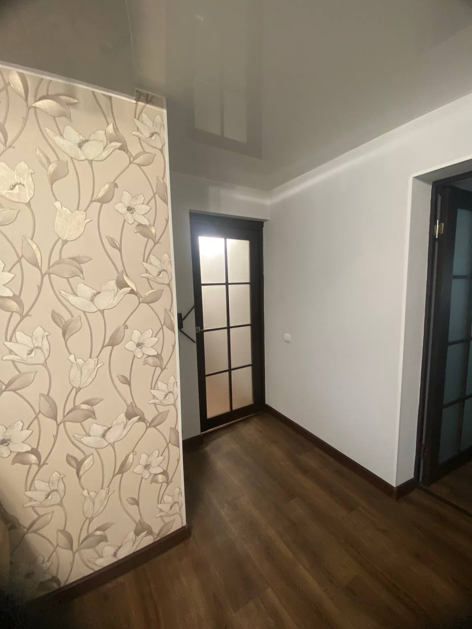 В квартире был выполнен качественный косметический ремонт,пол застелен линолеумом, стены выровнены и обклеены обоями,в зале натяжной потолок. Установлены пластиковые окна,новые межкомнатные двери.