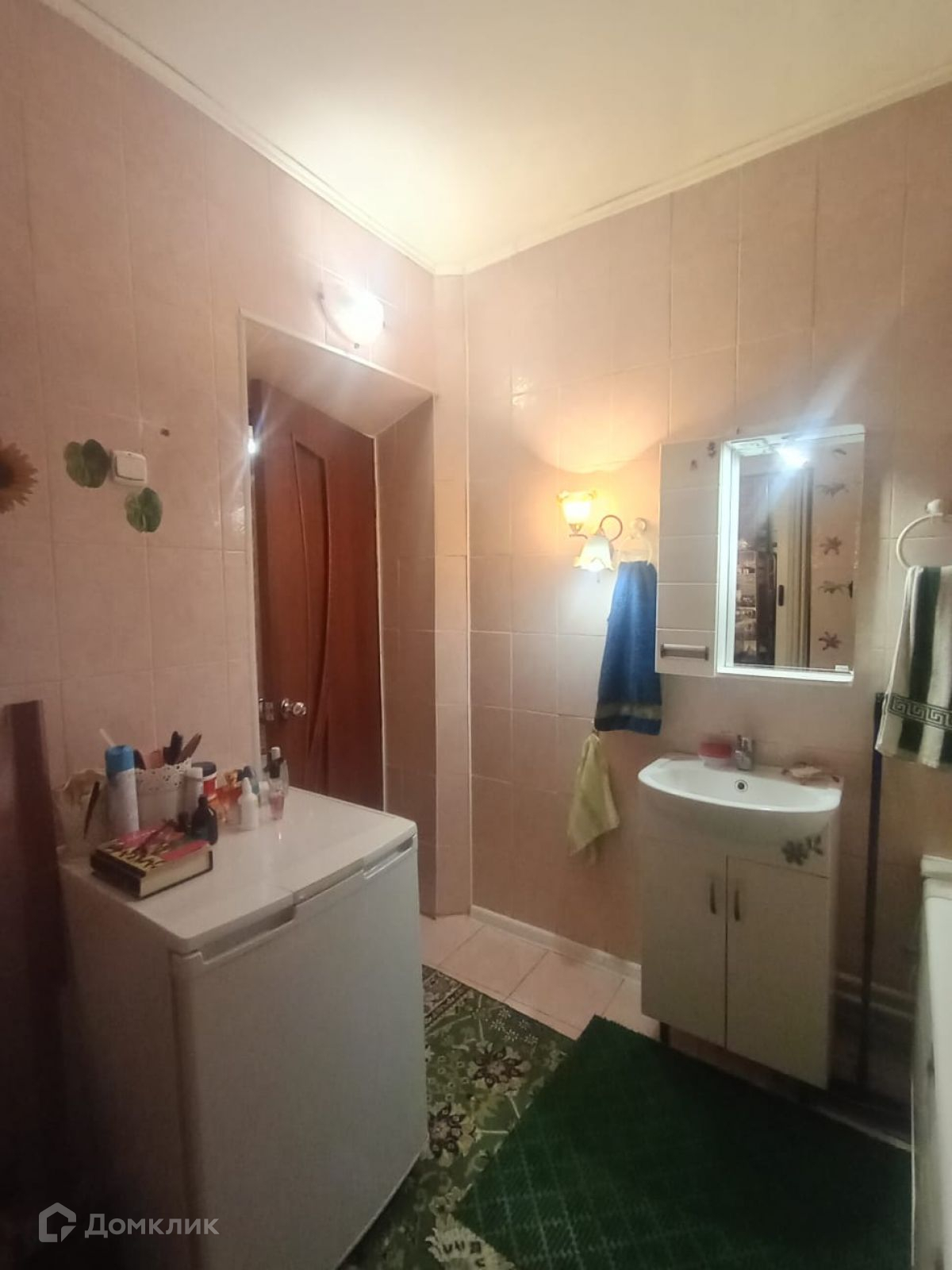 Санузел совмещён, пол и стены выложены кафельной плиткой. Вся сантехника в рабочем состоянии, установлены водосчётчики. Также есть просторная кладовая для хранения вещей.