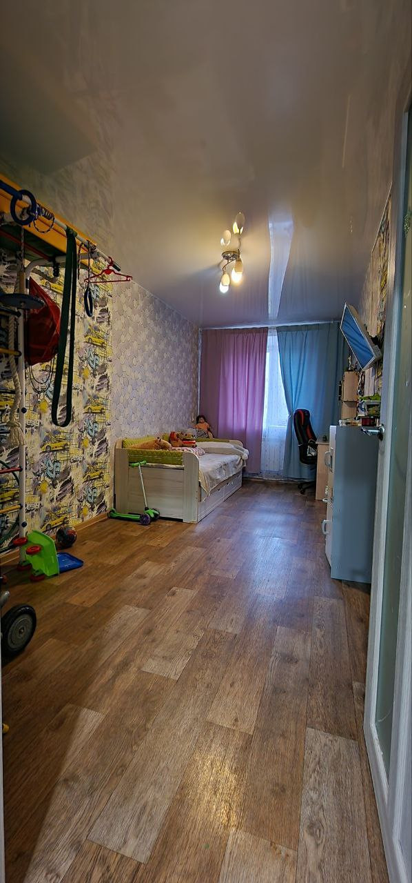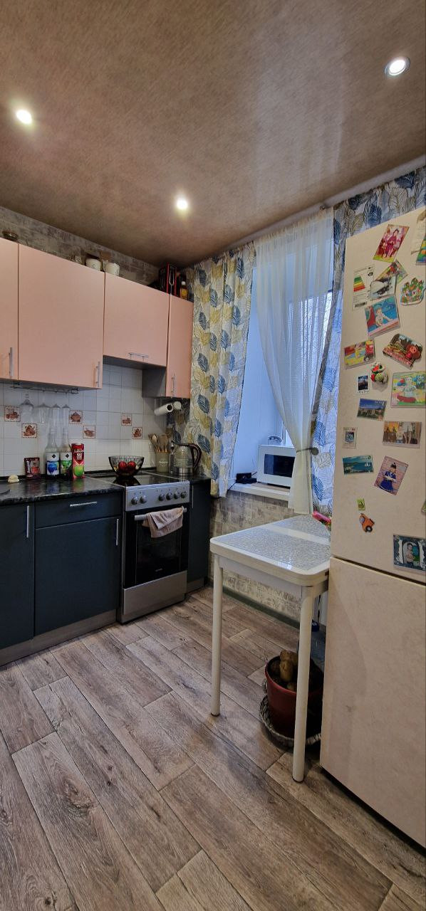 В квартире установлены пластиковые окна, на стенах наклеены обои, потолок натяжной, на полу постелен линолеум, новые межкомнатные двери, санузел совмещен выложен кафельной плиткой, заменены стояки установлены счетчики на воду, балкон застеклен и утеплен, входная дверь установлена евро. Вся инфраструктура в шаговой доступности: техникум, бассейн, детский сад, школа, магазины, аптека, автобусная остановка, парикмахерская. Документы готовы. Возможно приобретение с помощью ипотеки и мат. капитала.