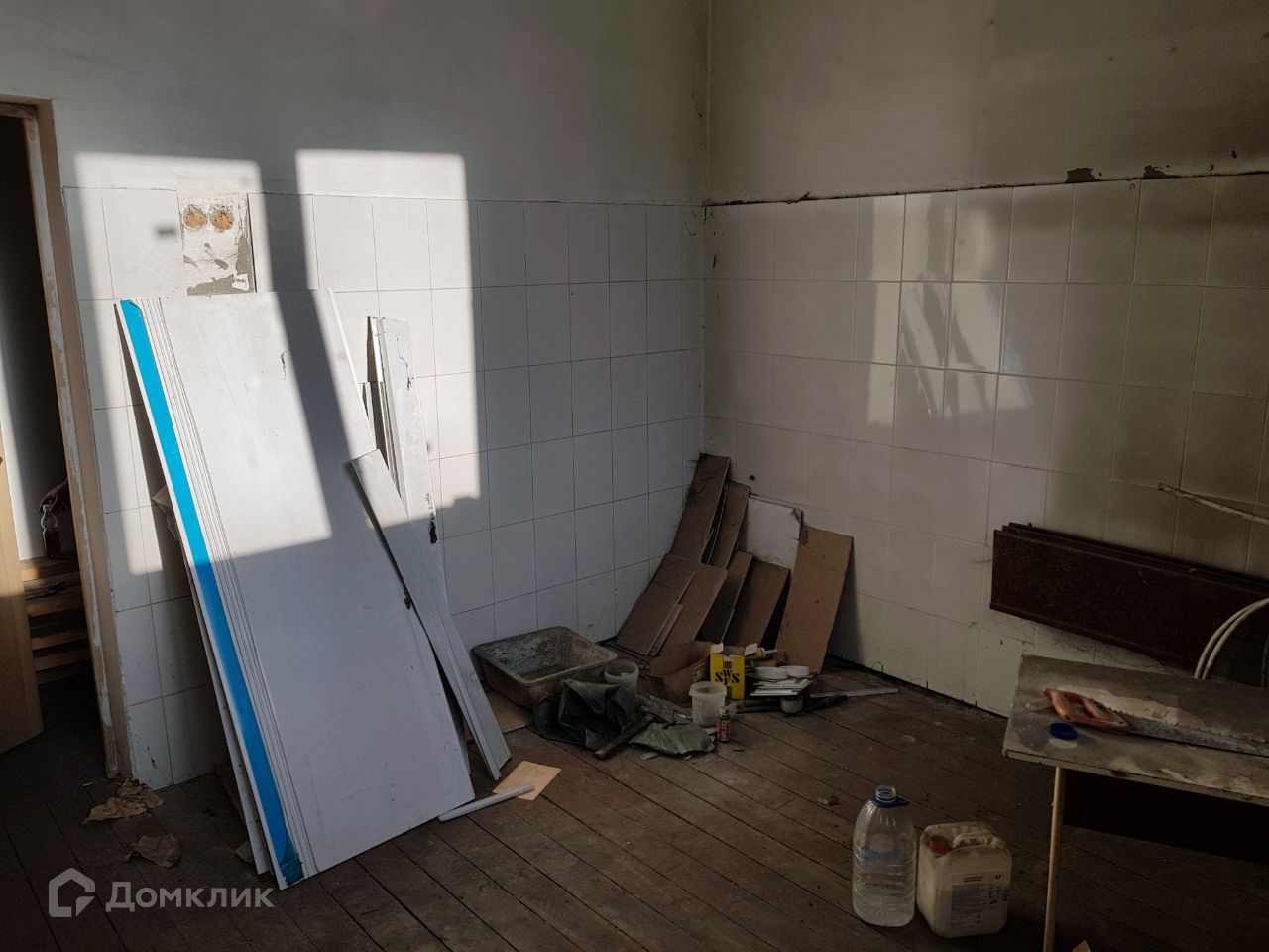 В помещении начат капитальный ремонт, установлены пластиковые окна, выровнены стены, полностью заменена электропроводка,на стенах фартук из кафеля (очень практично при уборке и более долговечно), остается лишь сделать отделку под свои нужды и начать эксплуатацию.