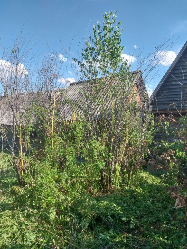 На участке растет яблоня, вишня, черешня, красная и черная смородина.