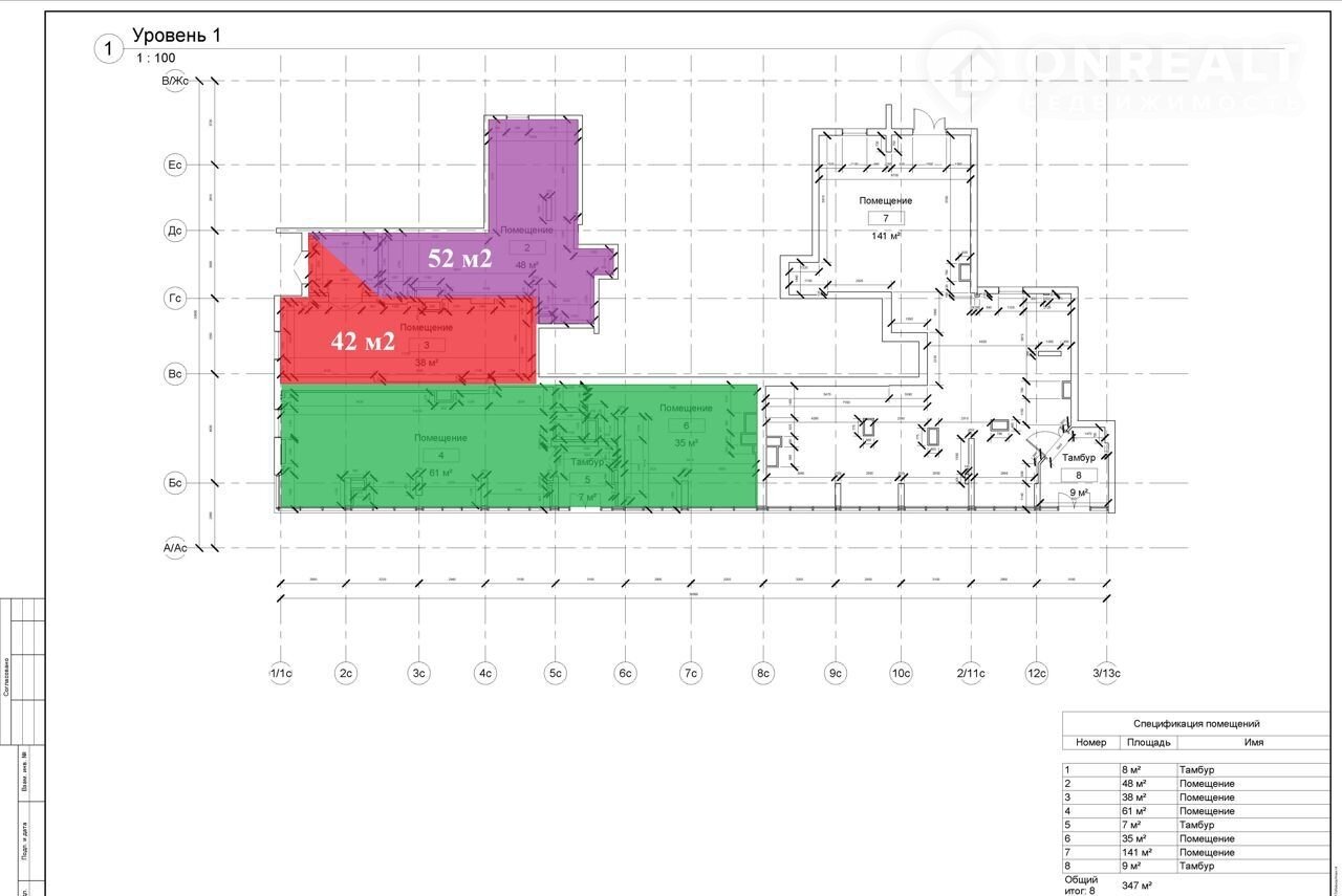 Площадь 42,0 м2 с общим тамбуром с соседним помещением.