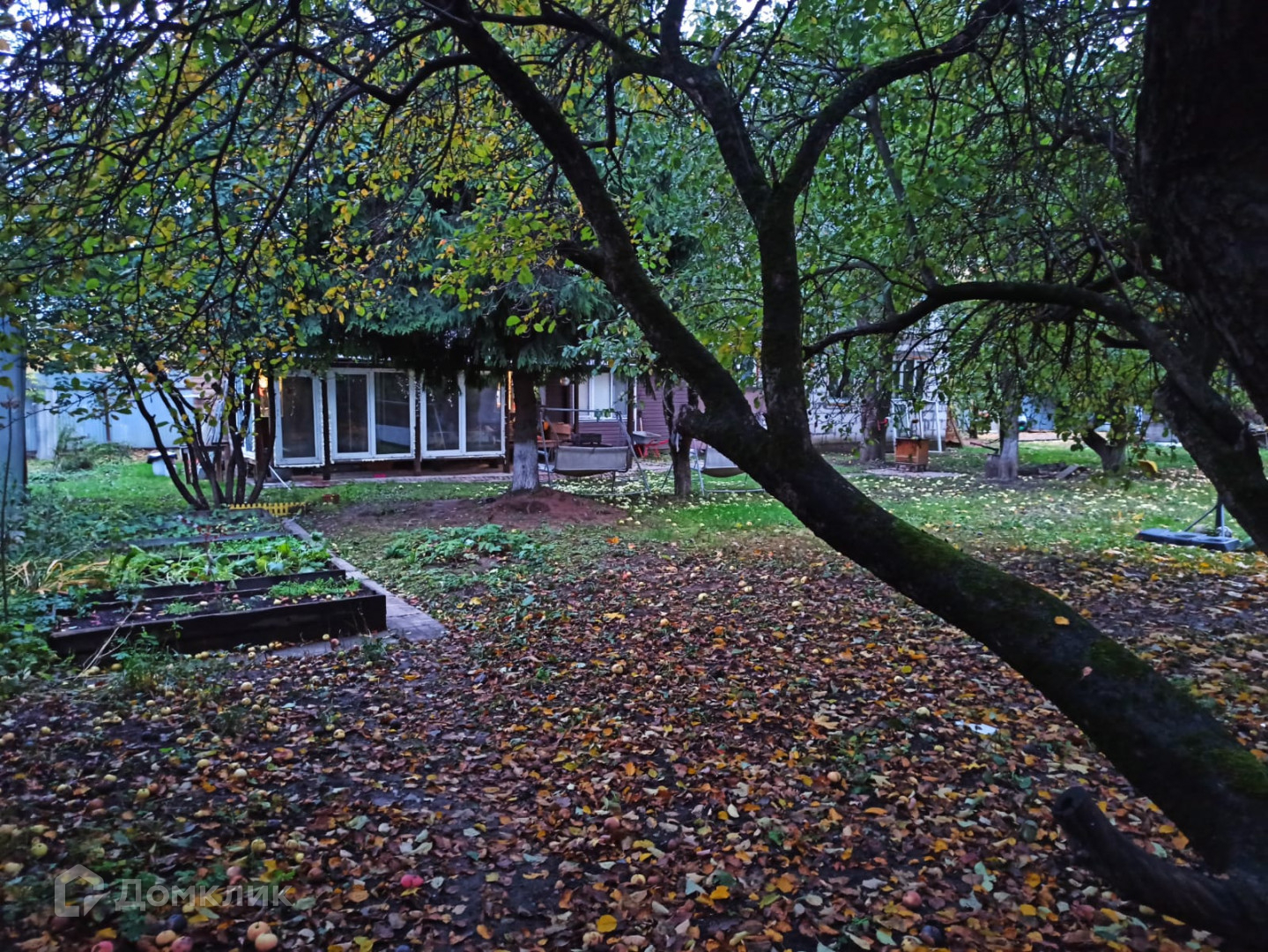 На участке растут многолетние деревья и кустарники.