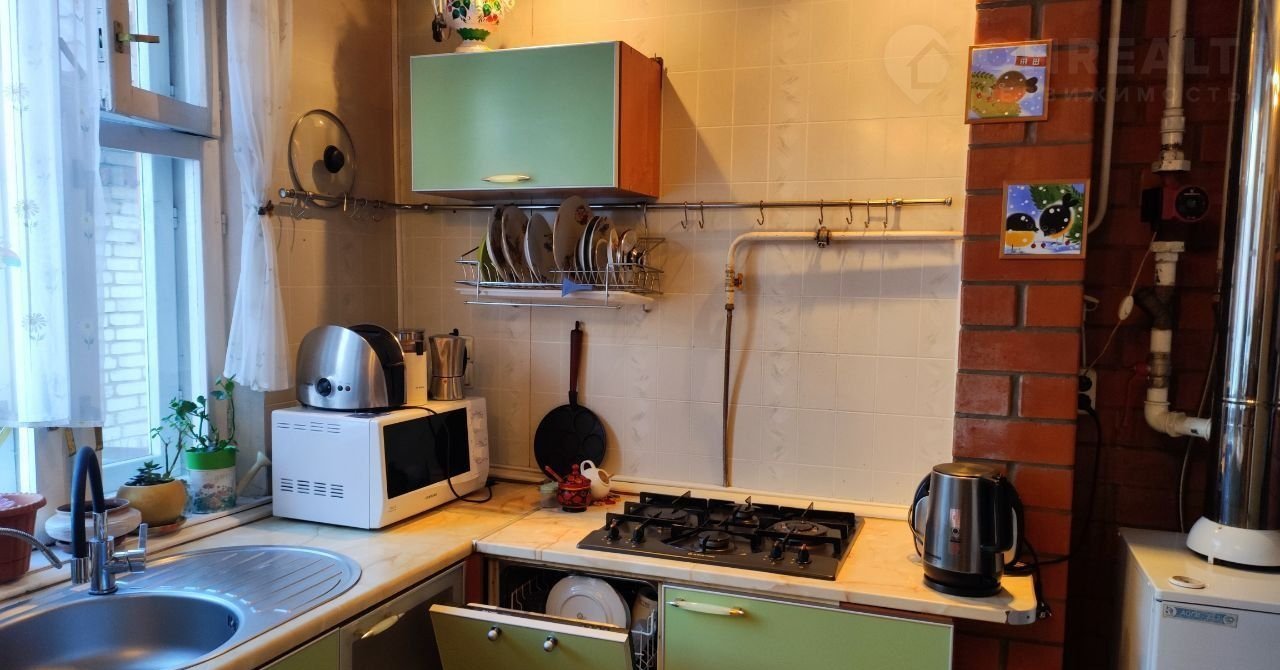 Оборудованная кухня, посудомойка, варочная панель, стол, стулья. Кухня и прихожая требуют косметического ремонта.