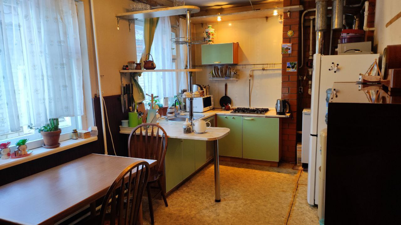 Конструкции дома, коммуникации, инженерное оборудование, фундаменты, стены, кровля находятся в отличном техническом состоянии, вложений не требуют. От первоначального дома 1954 года (сруб 56 м) остались внутренние стены зала и гардеробной 1 этажа. Наружные стены, фундаменты, окна, двери, перекрытия заменены. Реконструкция 2000-2012г. Материал стен лицевой кирпич+пеноблок, перегородки пеноблок /деревянный брус. Реконструкция узаконена.