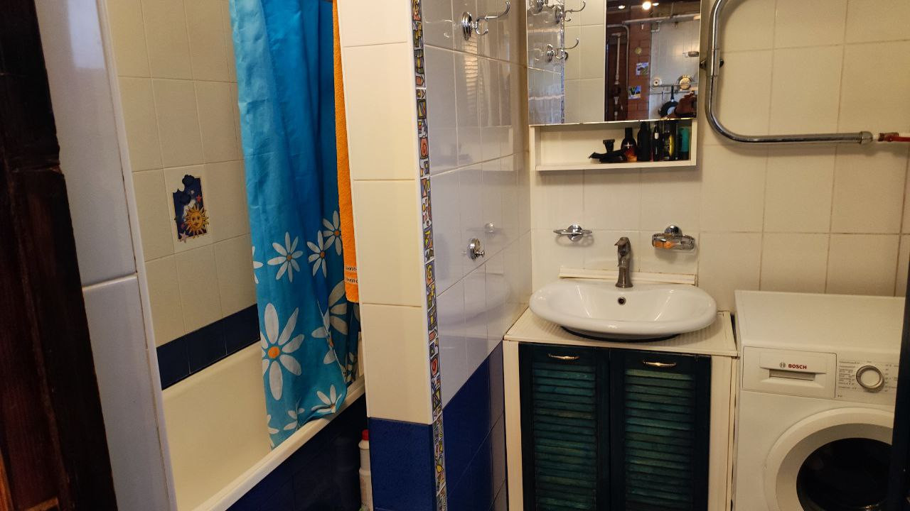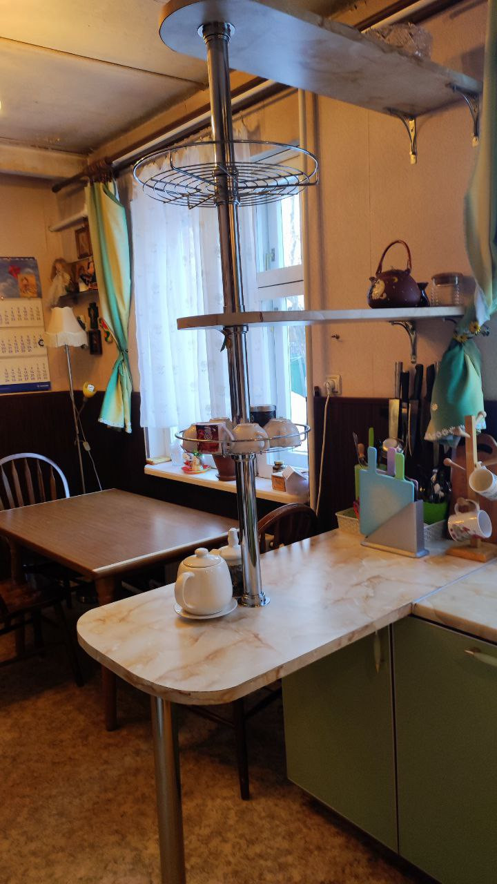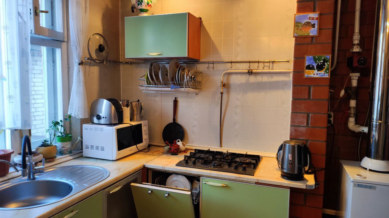 Оборудованная кухня, посудомойка, варочная панель, стол, стулья. Кухня и прихожая требуют косметического ремонта.