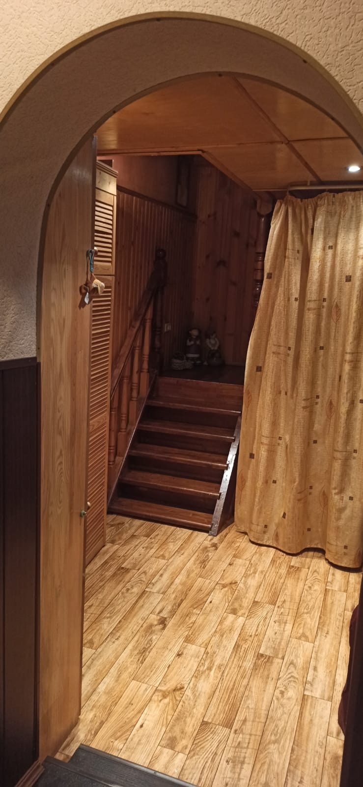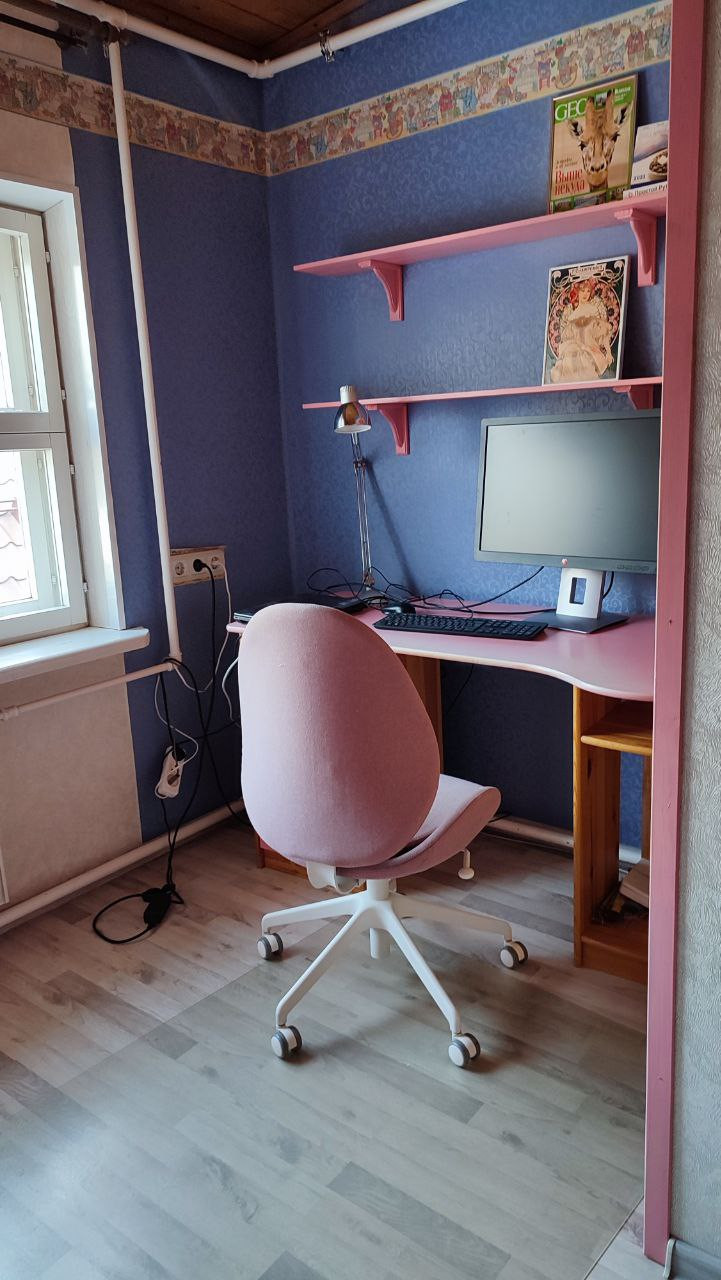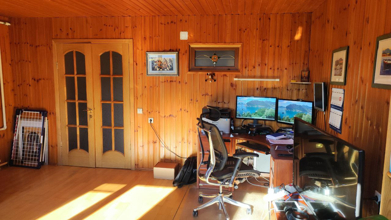 Гардеробная+встроенные шкафы и прочая мебель по всему дому. 3 кровати, диван. Письменные и компьютерные столы. Можно заехать сразу. Полностью обставленная сауна.