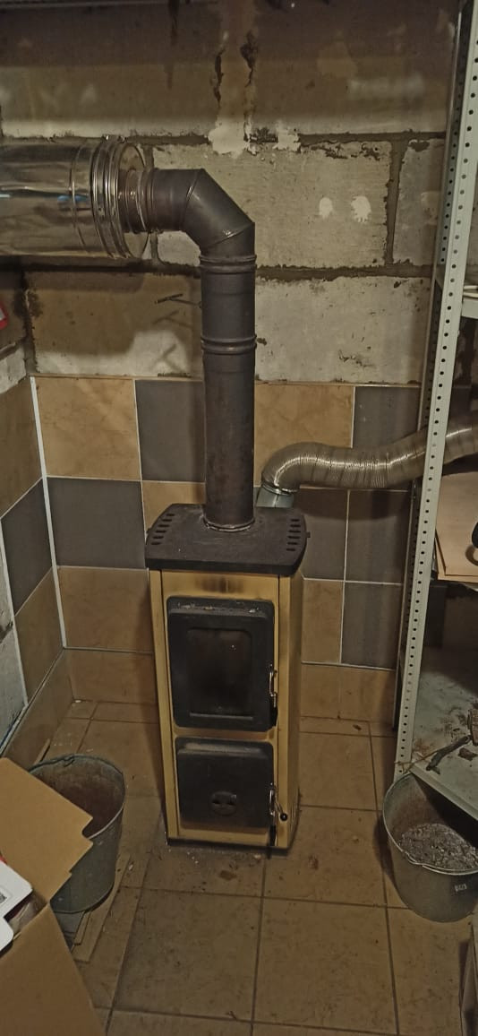 Газовый котел, колонка. В гараже дровяная печь-камин Thorma.