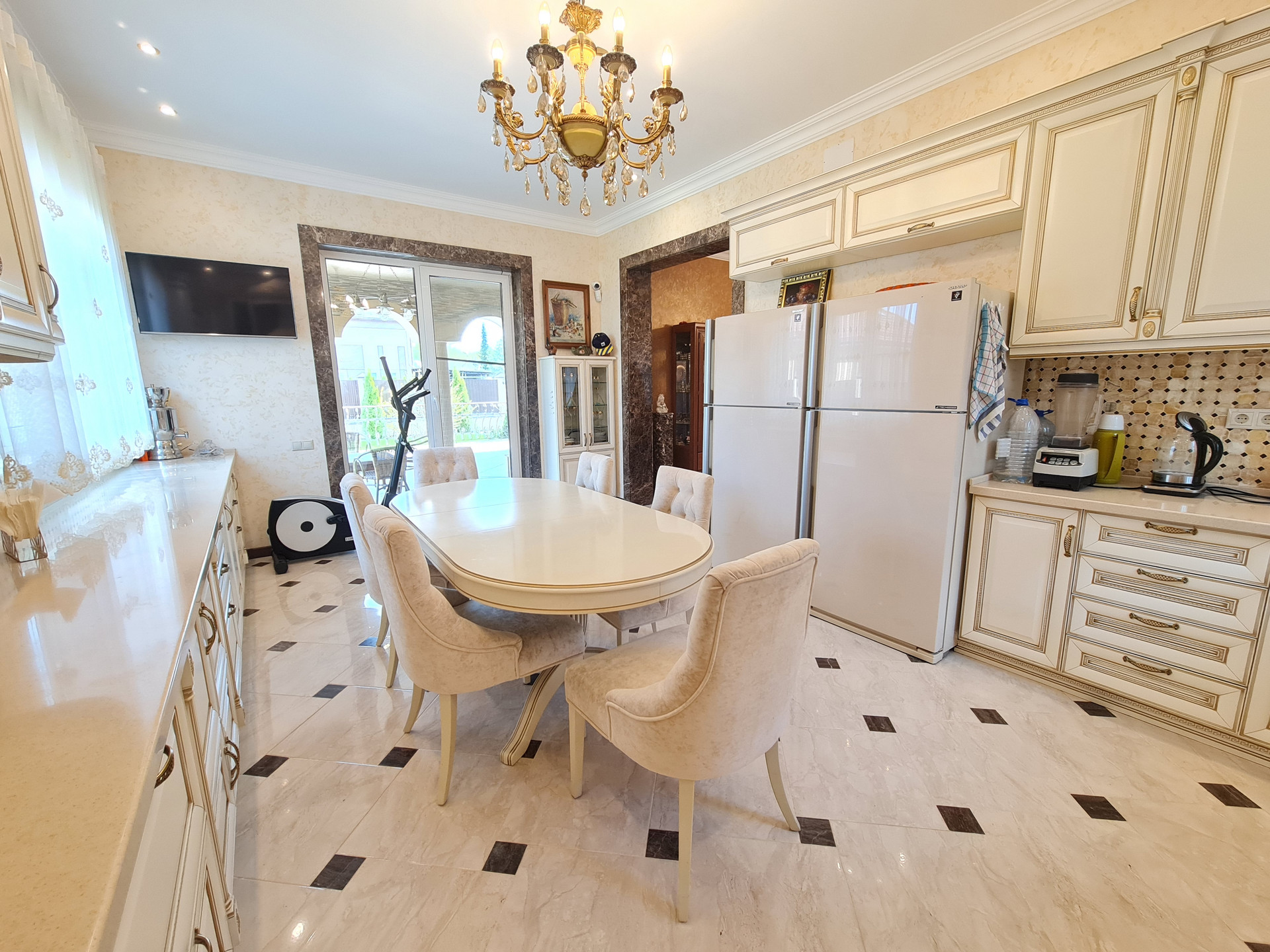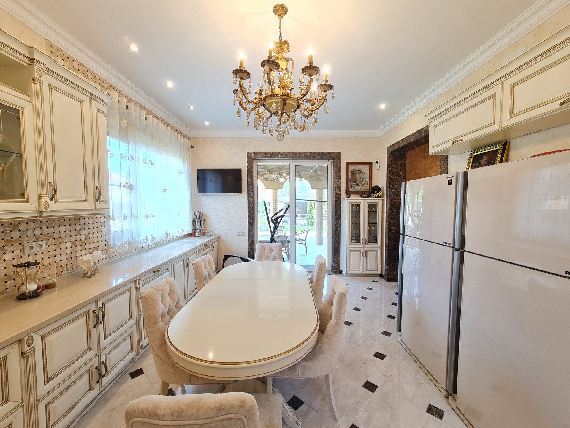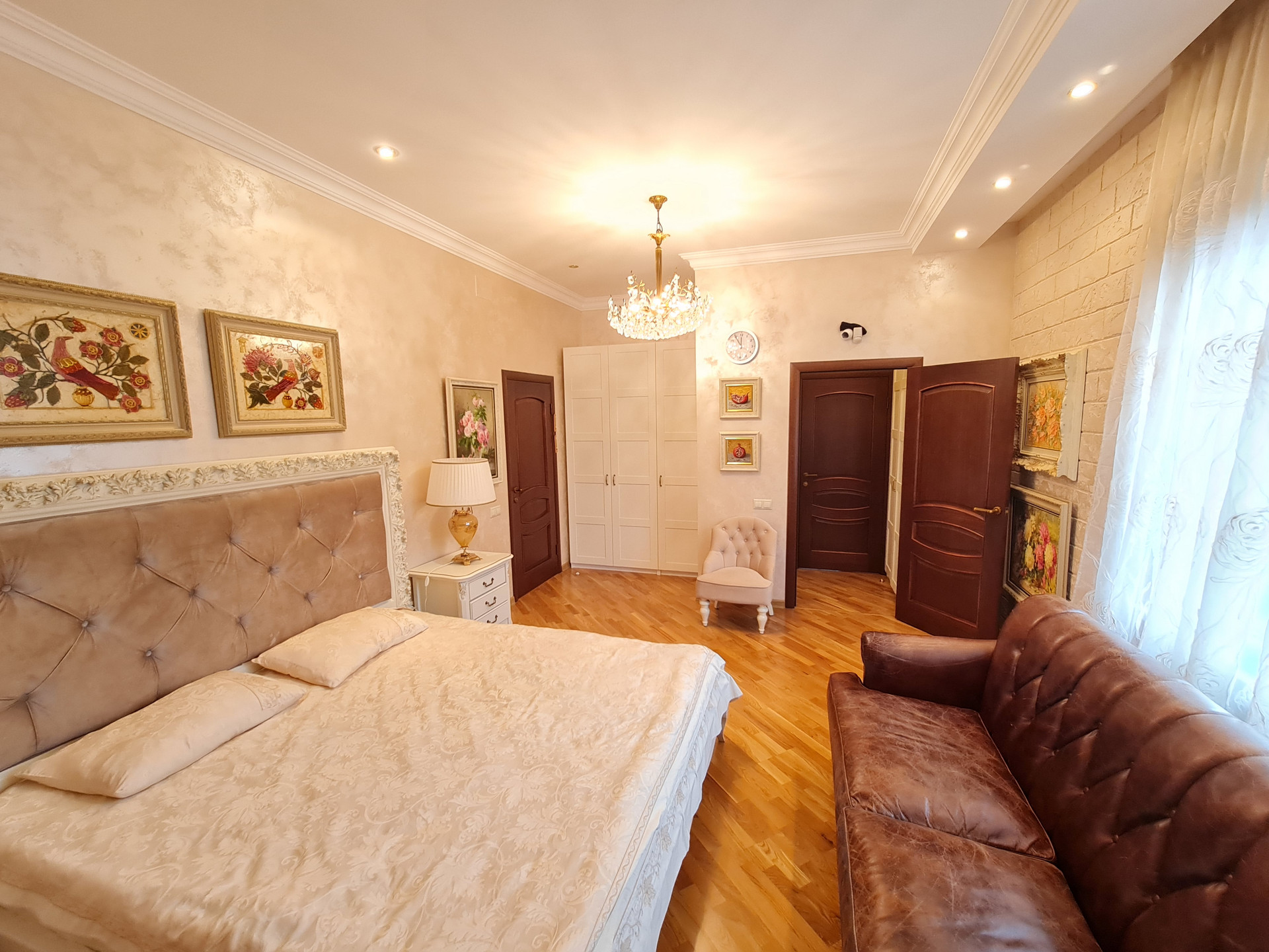 В доме остается вся мебель, люстры и шторы. Можно заехать и жить. Всё в идеальном состоянии. Установлена сигнализация и видеонаблюдение. Интернет - оптоволокно.