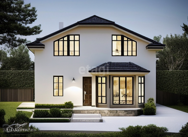 Каменный дом с большими окнами, эркером, верандой, выходящей на участок с вековыми соснами. Продуманная планировка: на первом этаже просторная гостиная 34 кв.м., кухня, прихожая, ванная комната, спальня; на втором этаже ванная и три спальни, одна из которых мастер-спальня с отдельной ванной комнатой.