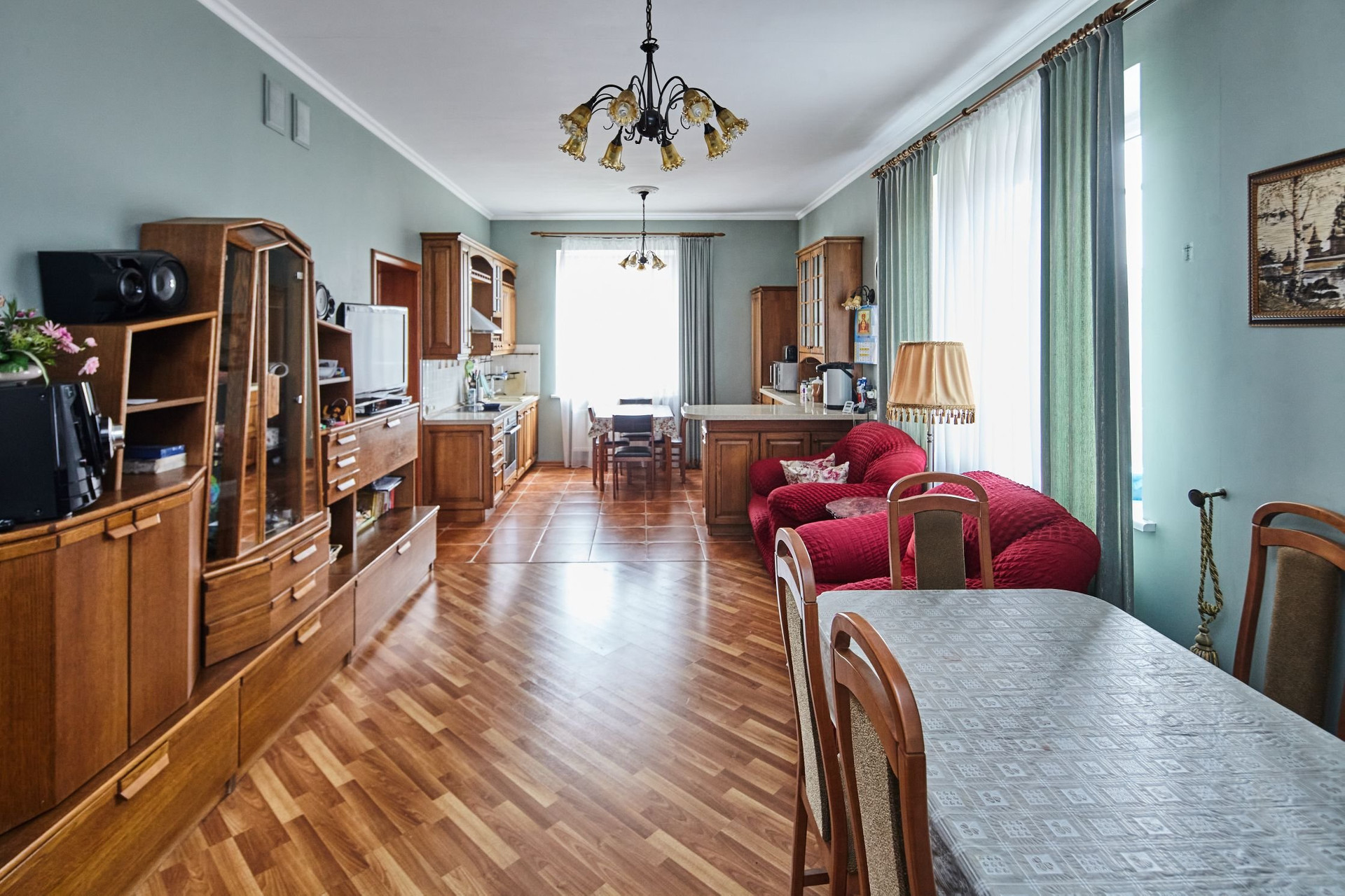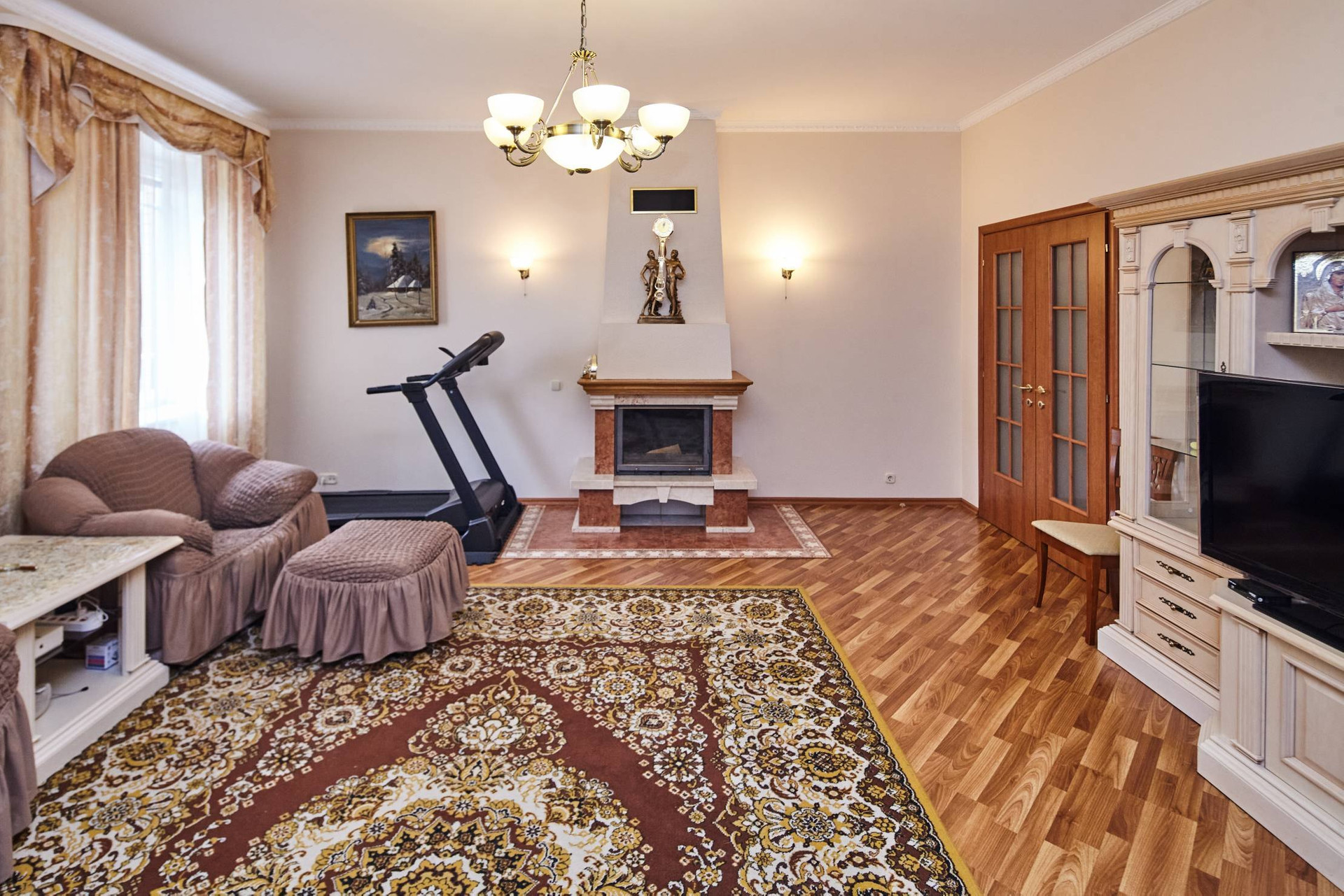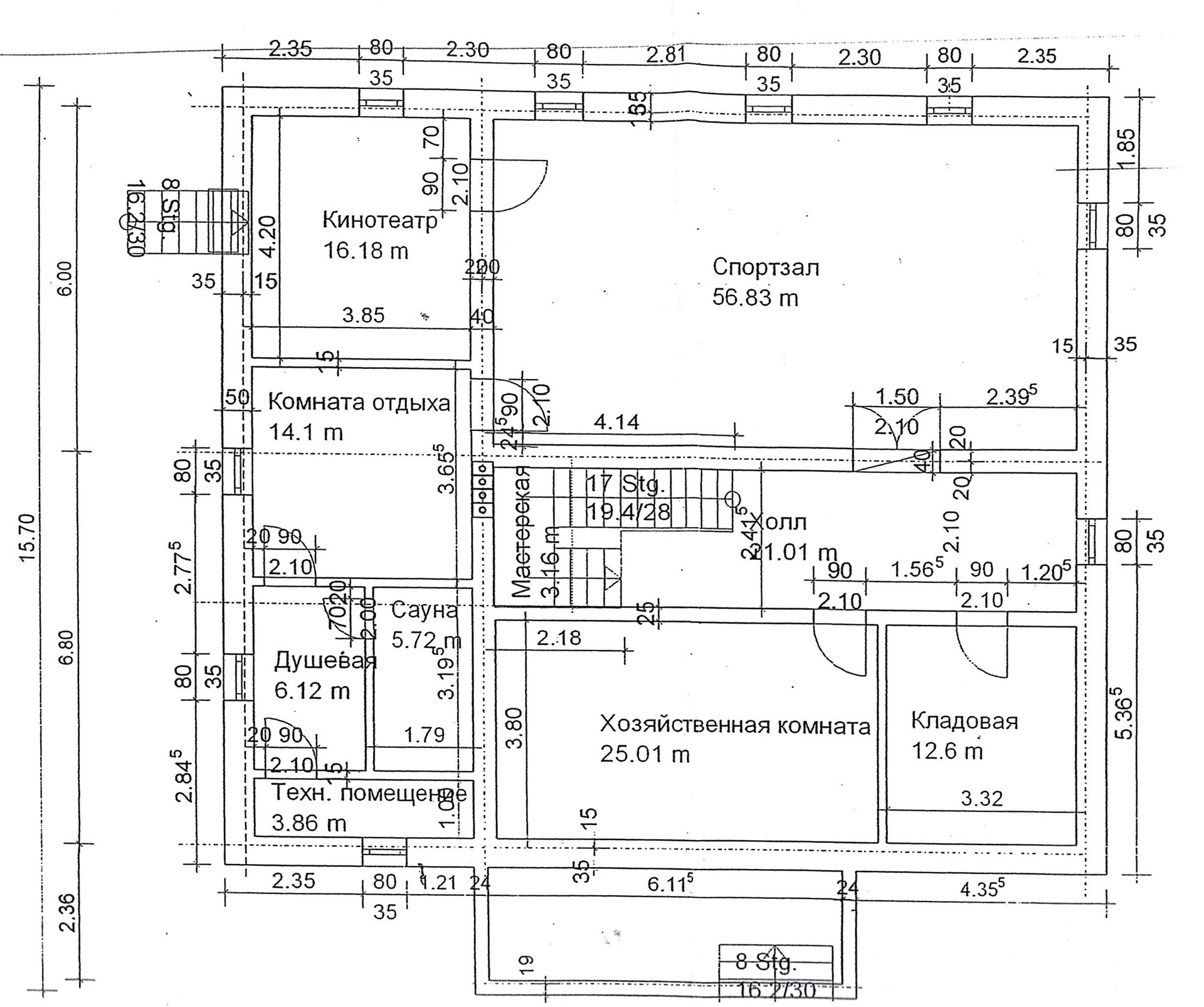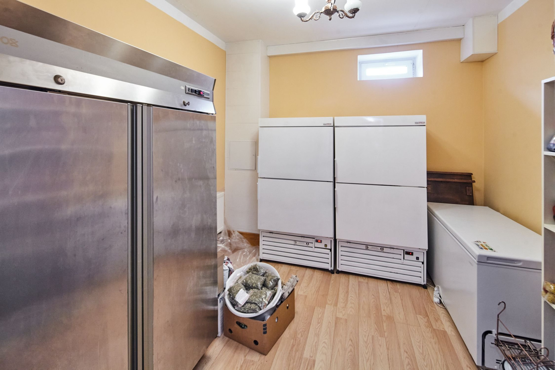 Цоколь: спортзал, кинотеатр, кладовая с установленным мощным итальянским холодильным и морозильным оборудованием, хозяйственная комната (оборудована шкафами и стеллажами для хранения), зона сауны (комната отдыха, душевая, сауна), техническая комната (с разводкой всех инженерных систем дома).