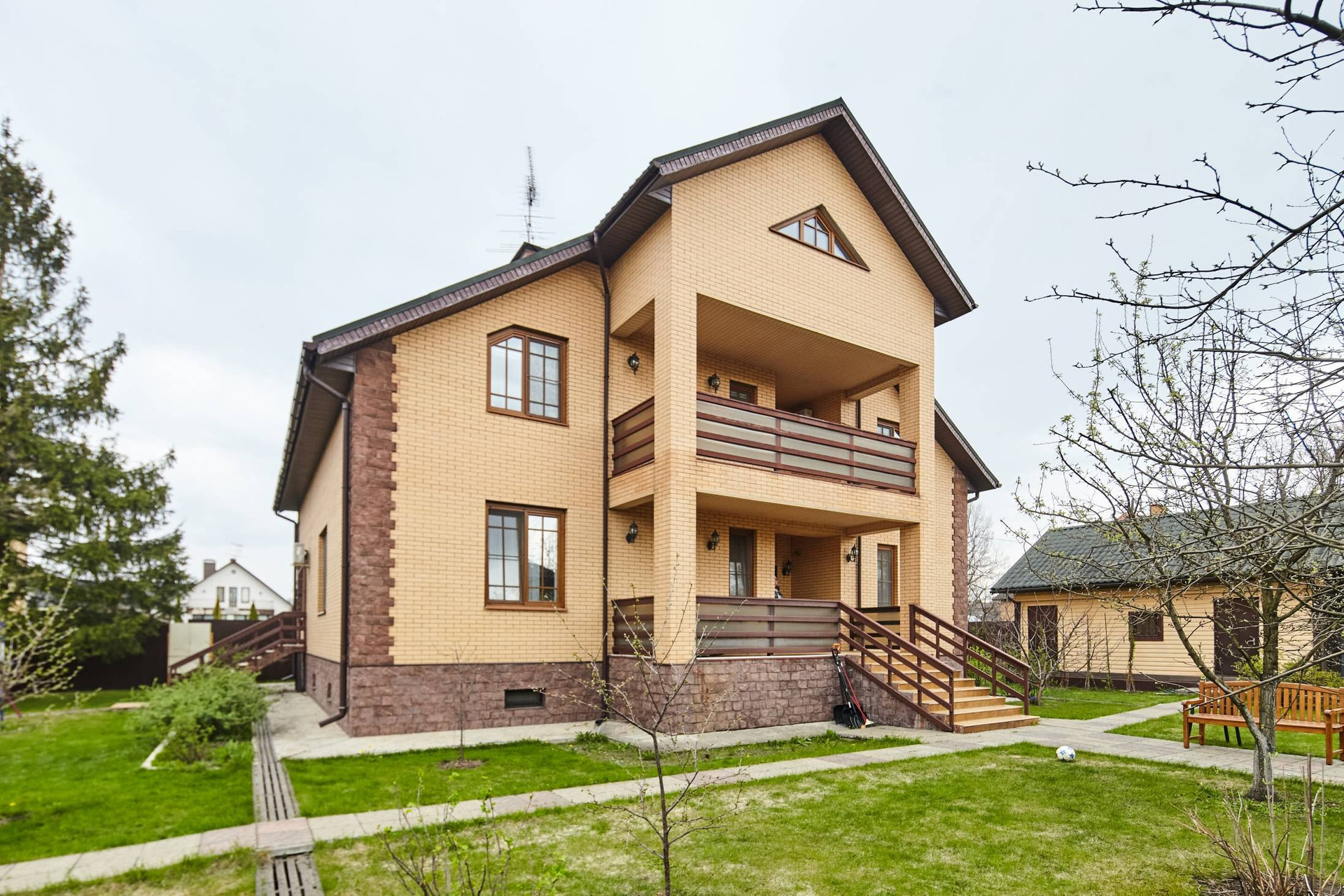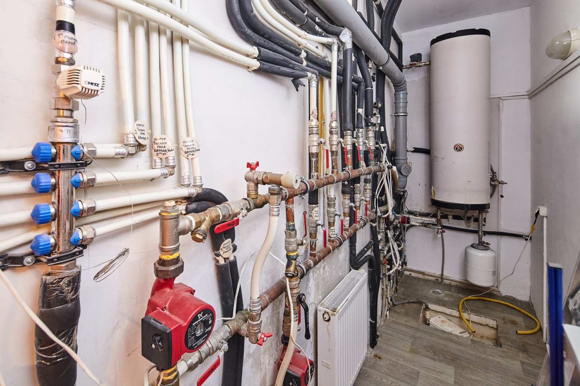 Коммуникации высокого качества обеспечивают комфортное проживание в доме круглый год. Газовый котел (работающий на магистральном газе), 300л дизеля в запасе, дизельная горелка для котла (в случае необходимости замена занимает не более 1ч). Центральная канализация, дополнительно имеется отдельный 3-переливной септик (в случае необходимости возможно переключение на него). Центральное водоснабжение, также дополнительно имеется скважина и система водоочистки. Два ввода электричества по 15кВт.
