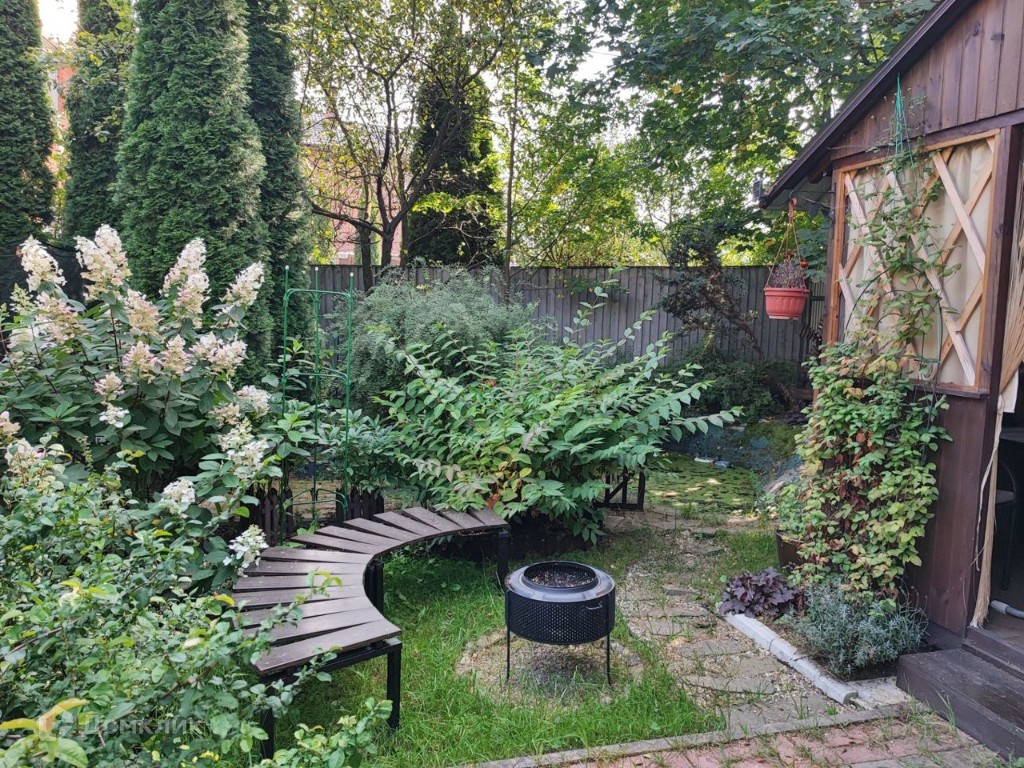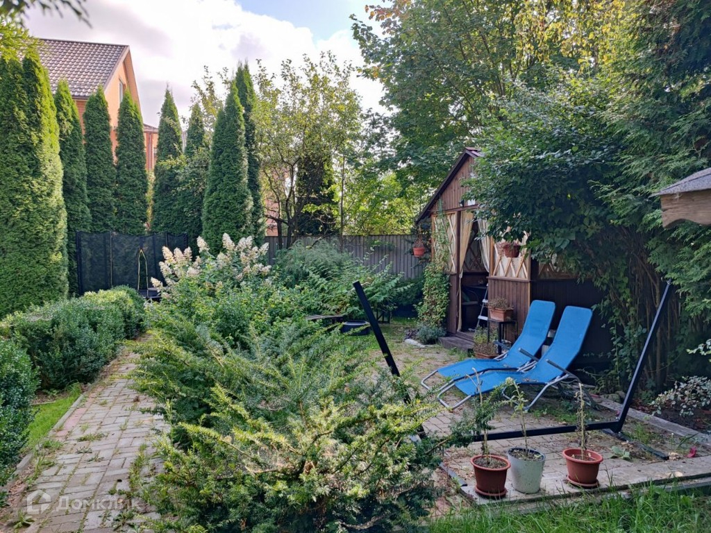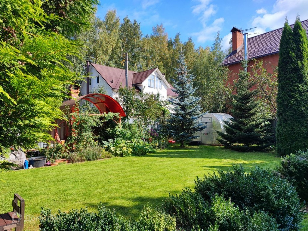 На участке: навес с автоматическим воротами на две машины, хоз.блок (примыкает к навесу), котельная (примыкает к дому), декоративный пруд, теплица, беседка, кирпичный крытый мангал, дорожки в тротуарной плитке, многолетние туи, хвойники, яблони, виноград.