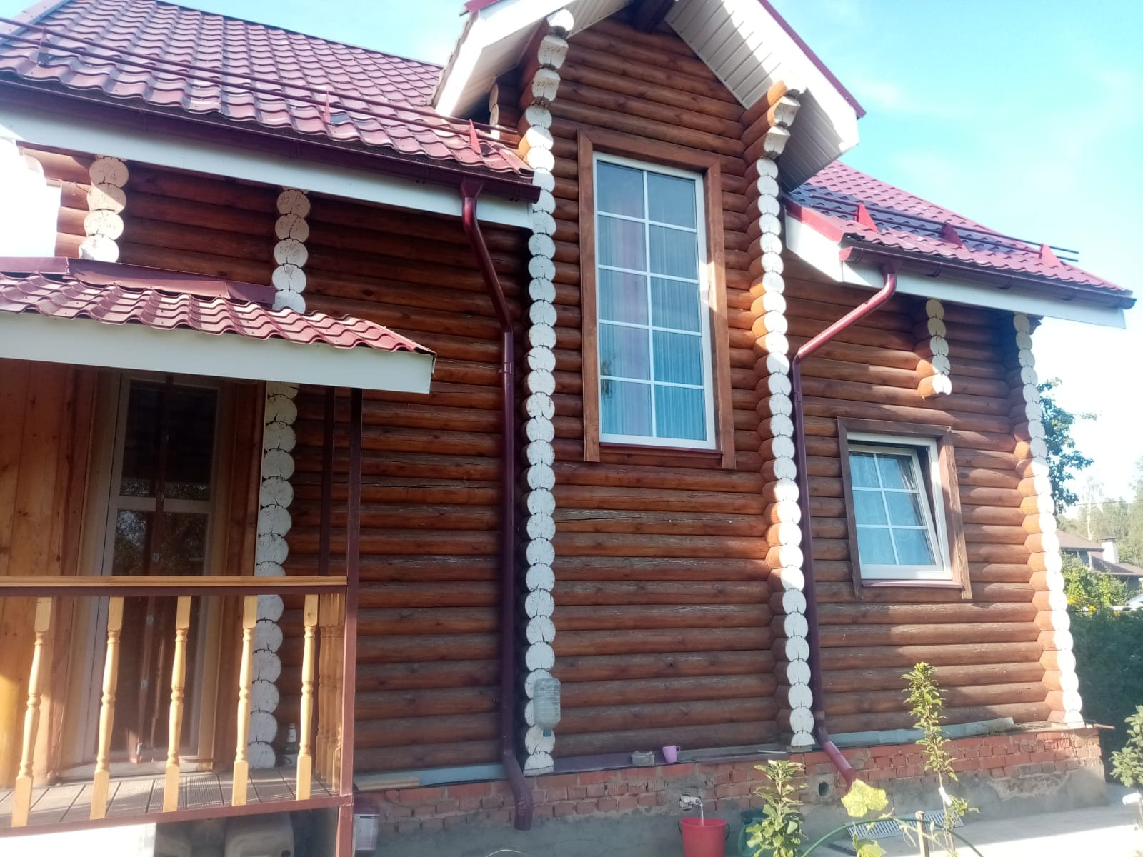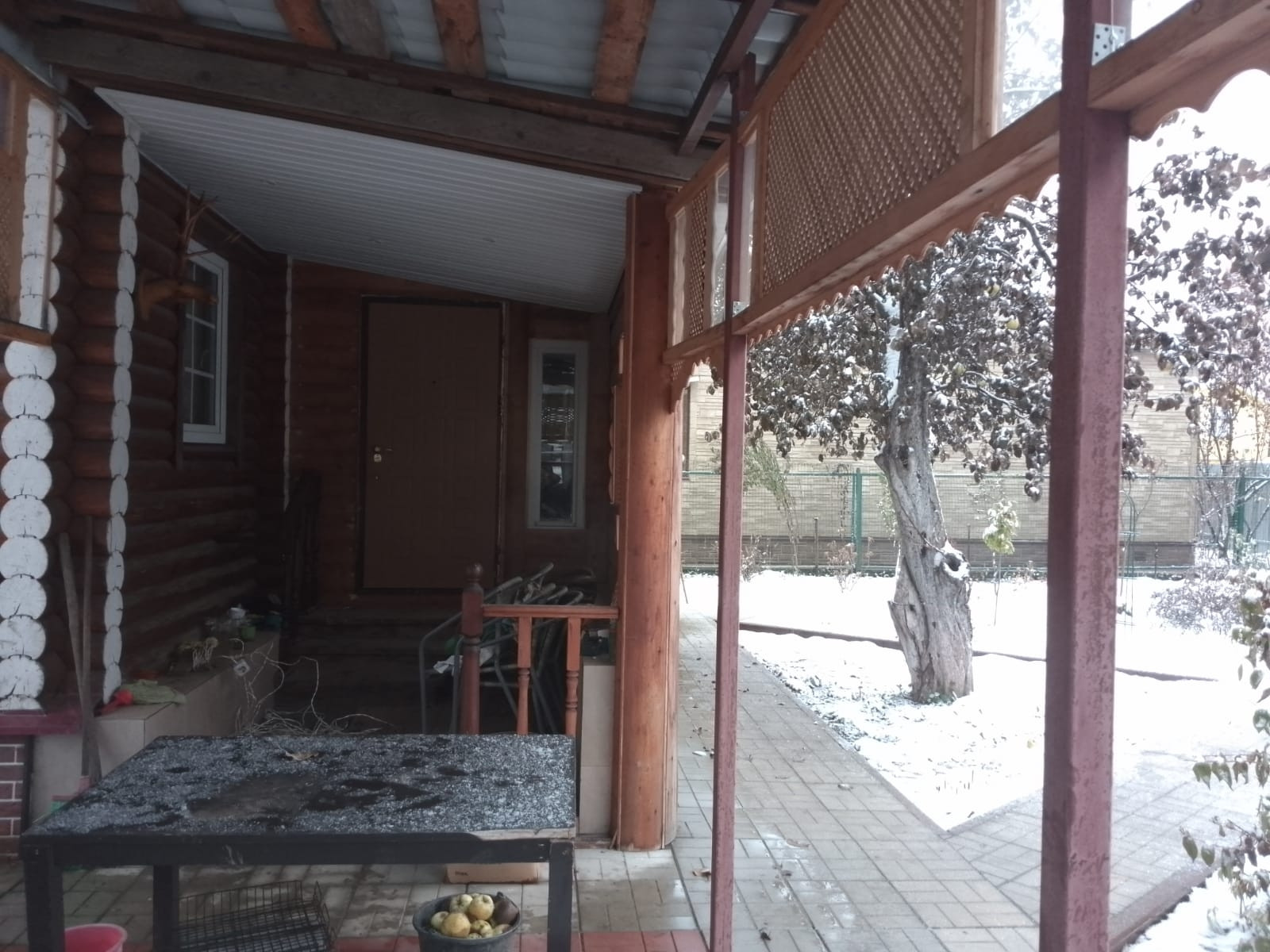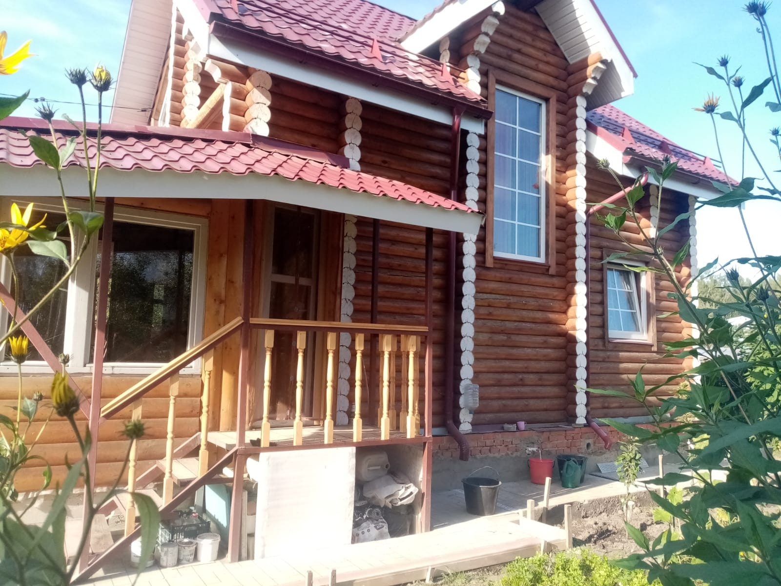 На участке находятся дом из сруба и строение для мангальной зоны и хранения инвентаря.Много плодоносящих деревьев и ягодных кустарников,ну и конечно цветов.Есть место под гараж для авто.