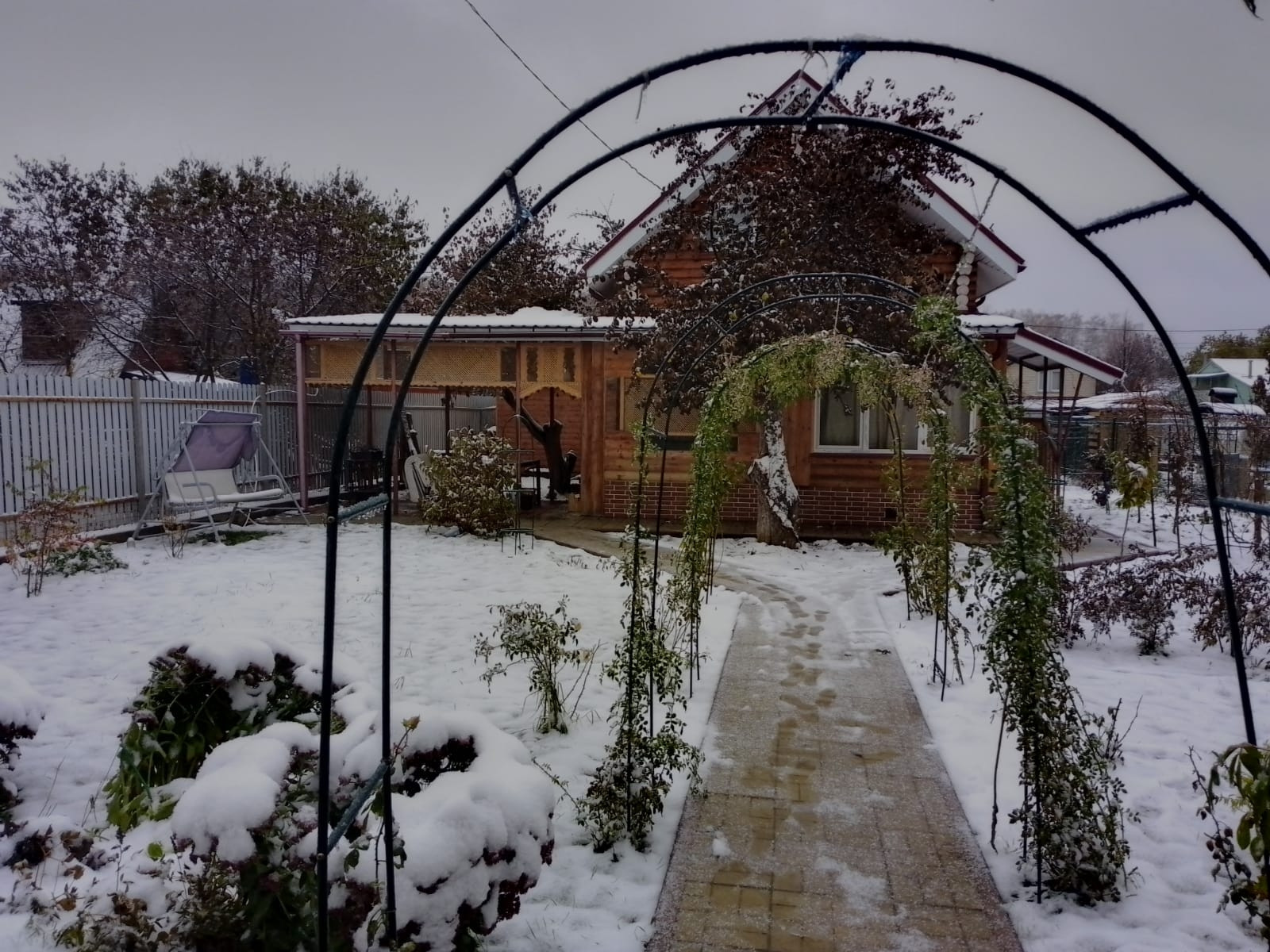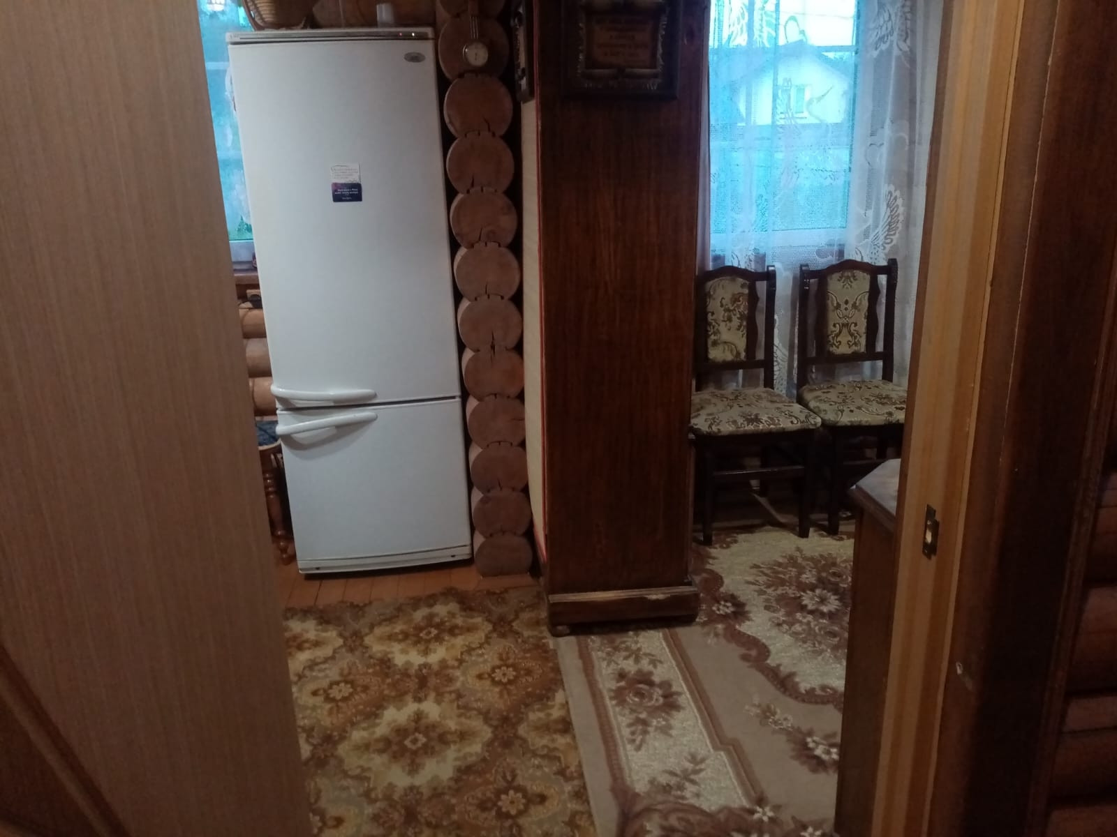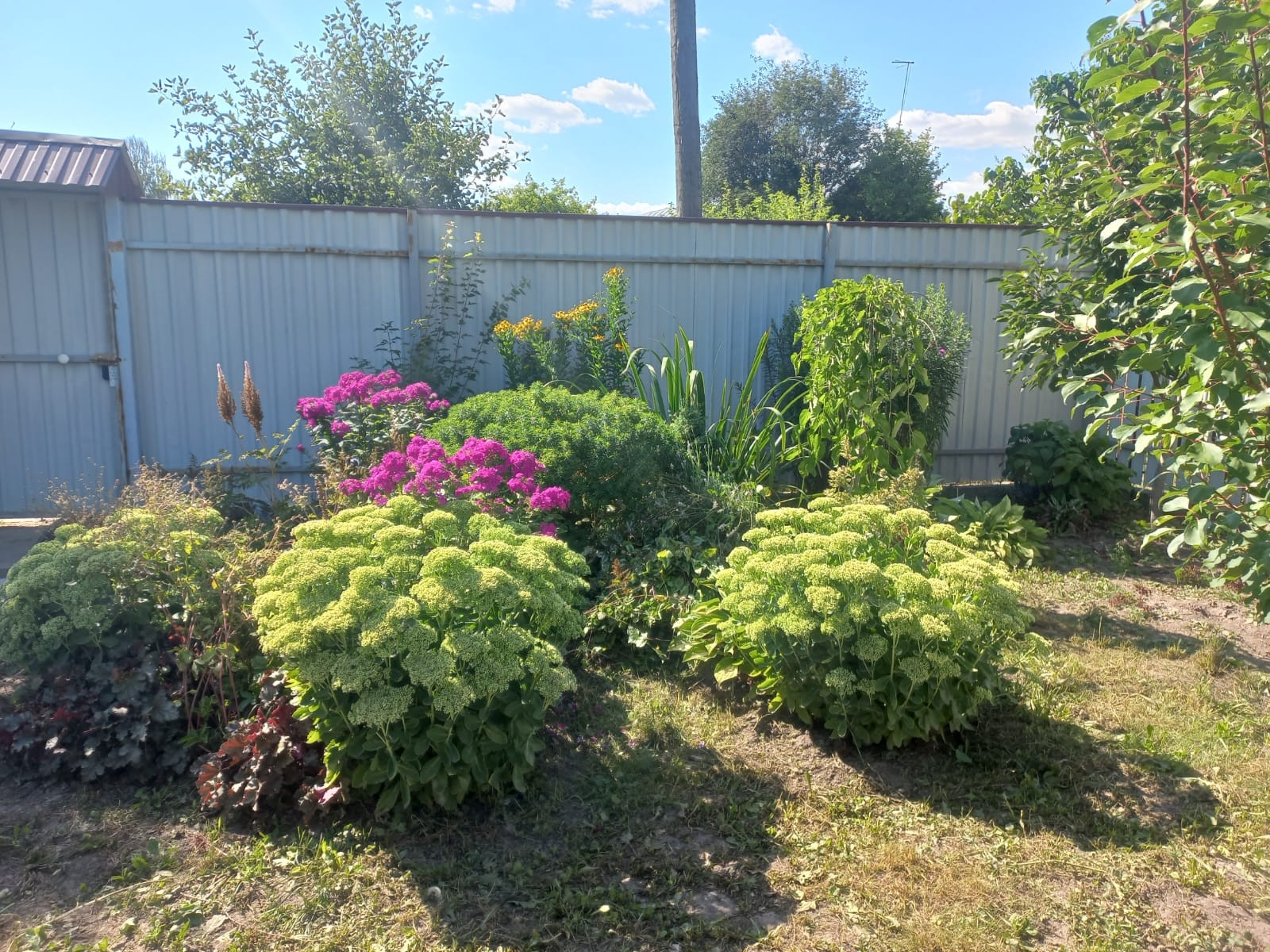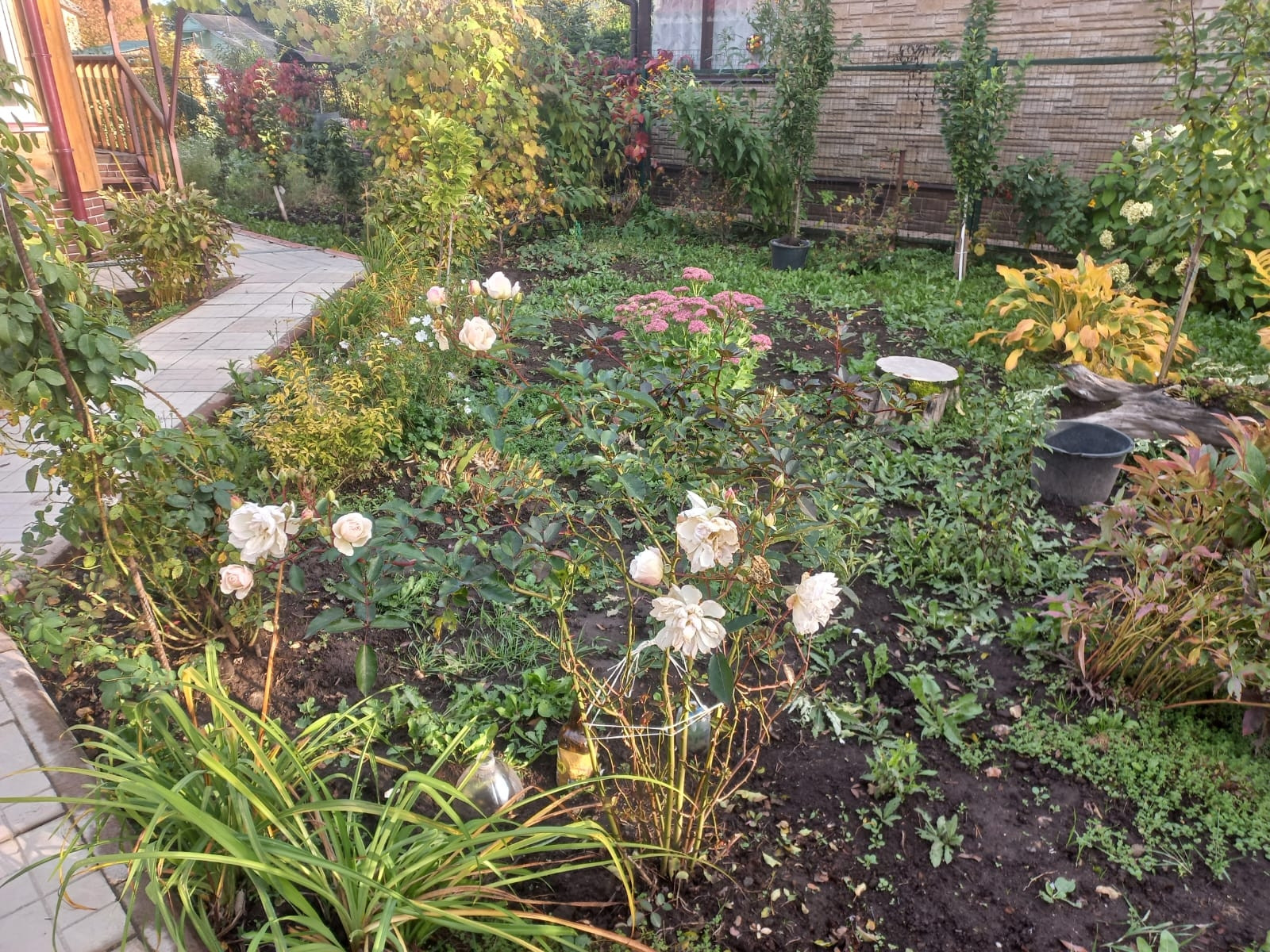 На участке находятся дом из сруба и строение для мангальной зоны и хранения инвентаря.Много плодоносящих деревьев и ягодных кустарников,ну и конечно цветов.Есть место под гараж для авто.