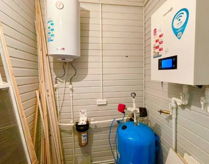 Коммуникации: септик, скважина, отопление от эл. котла, эл-во, сантехника. Участок 7.3 сотки.