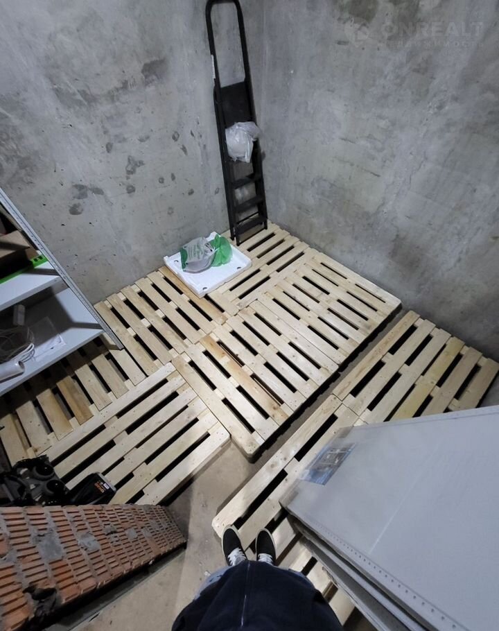 Кладовое помещение -1 этаж рядом с подьездом номер 5.   На полу палеты, установлены стеллажи, металическая дверь с вентиляцией. есть освещение (электричество). Доступ к камера наблюдения.