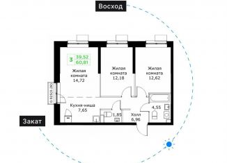 Общая площадь: 60.9 м2
