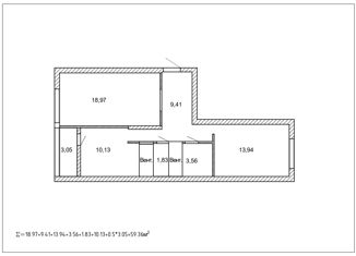 Общая площадь: 56.5 м2