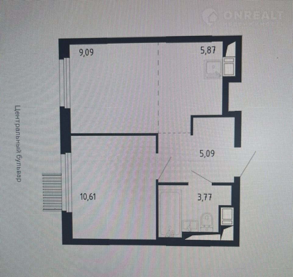 Общая площадь 34.4 м2