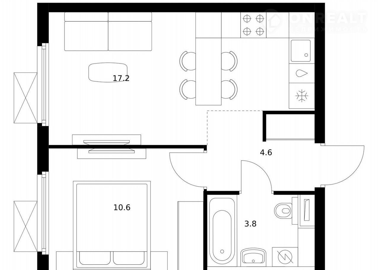 Общая площадь 36.2 м2