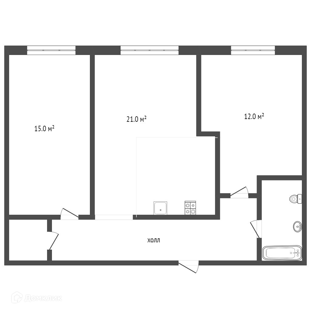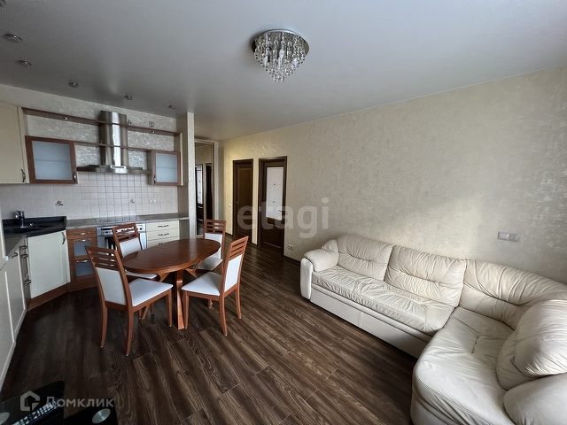 В квартире просторная кухня-гостиная 21 м², 2 спальни (15 м² и 12 м²), вместительная гардеробная, высокие потолки (2,8 м).