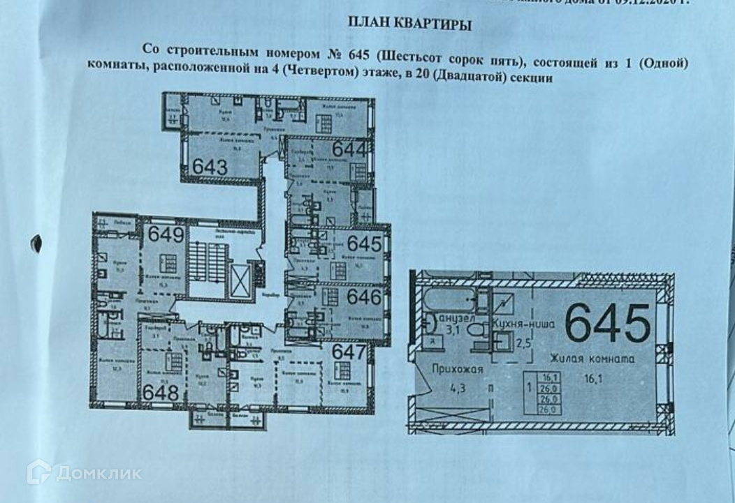 Арт. 31594982 Продается просторная однокомнатная квартира-студия в ЖК «Императорские Мытищи» общей площадью 26 кв.м.