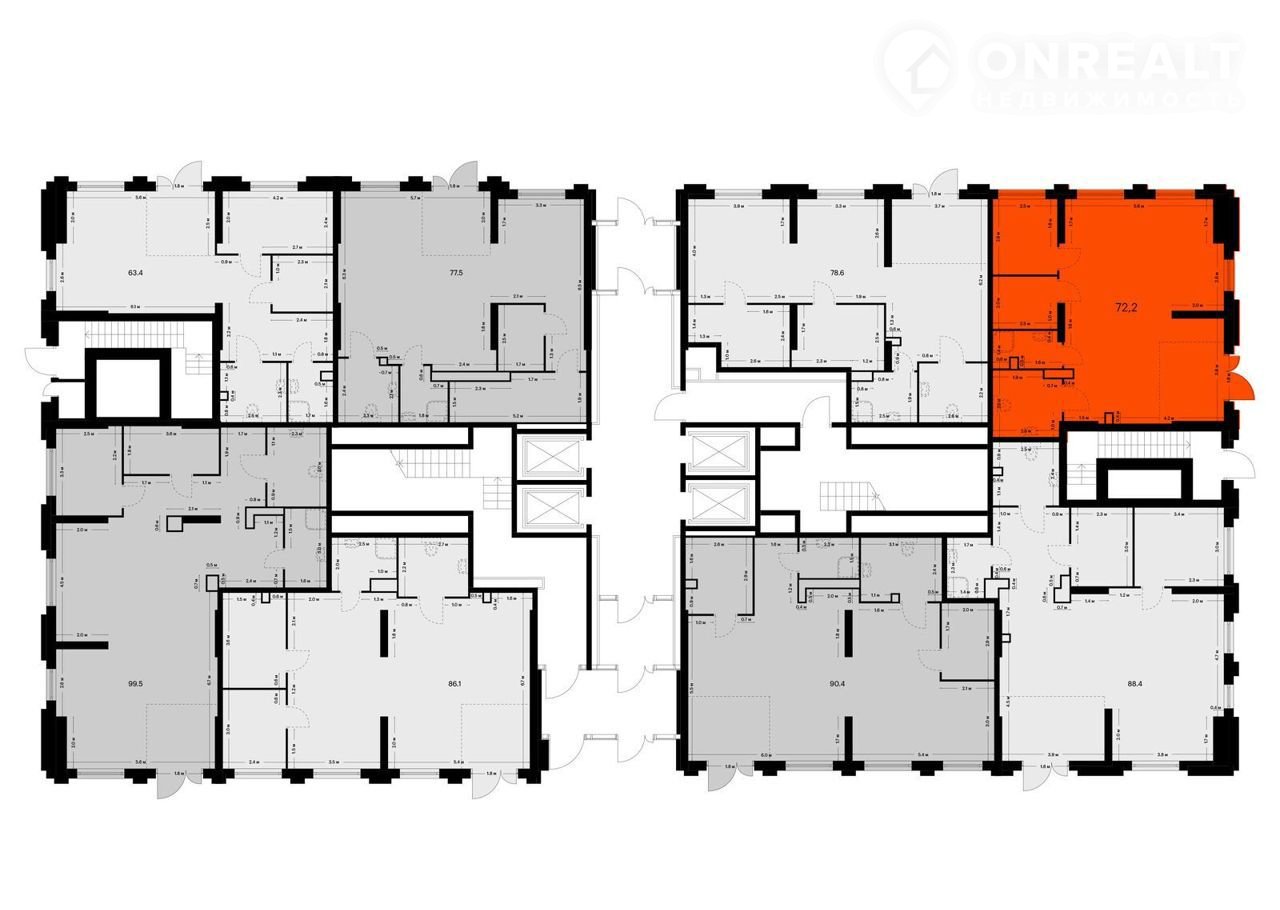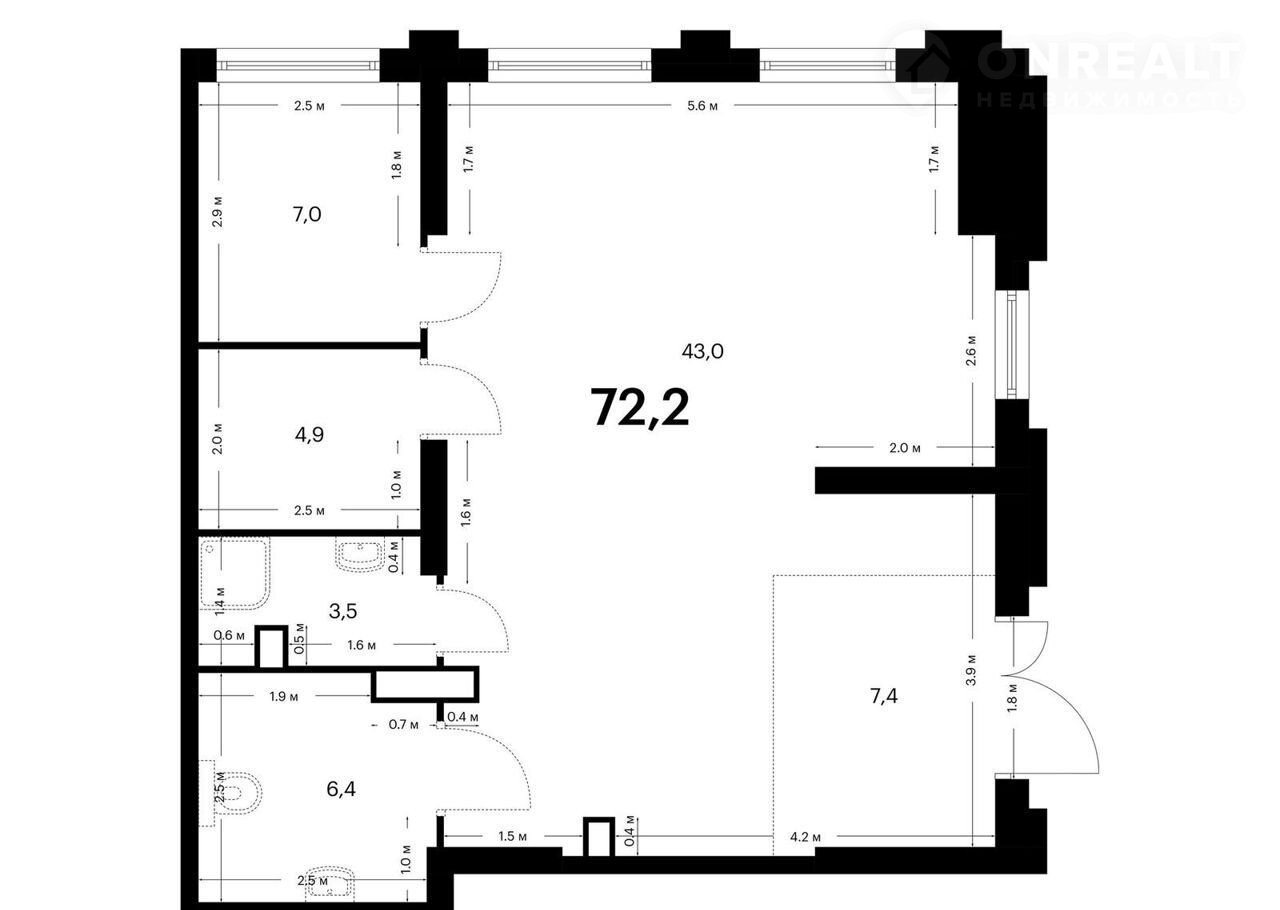 Общая площадь 72.2 м2