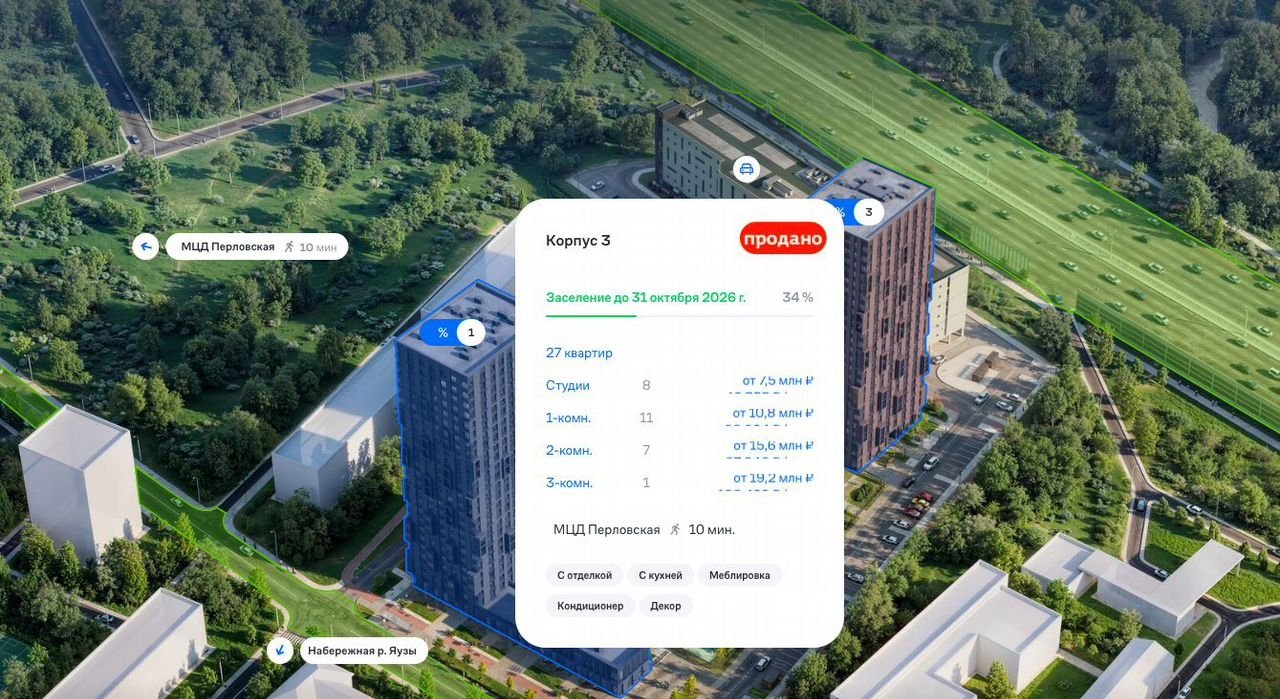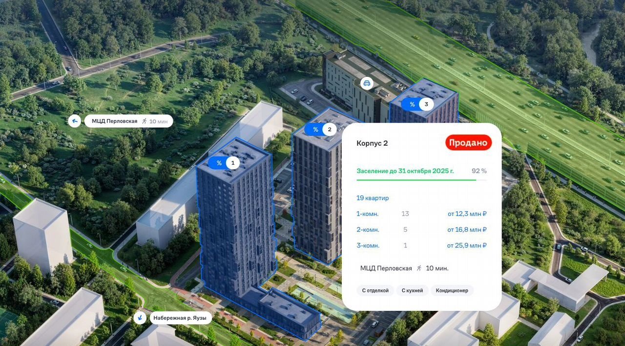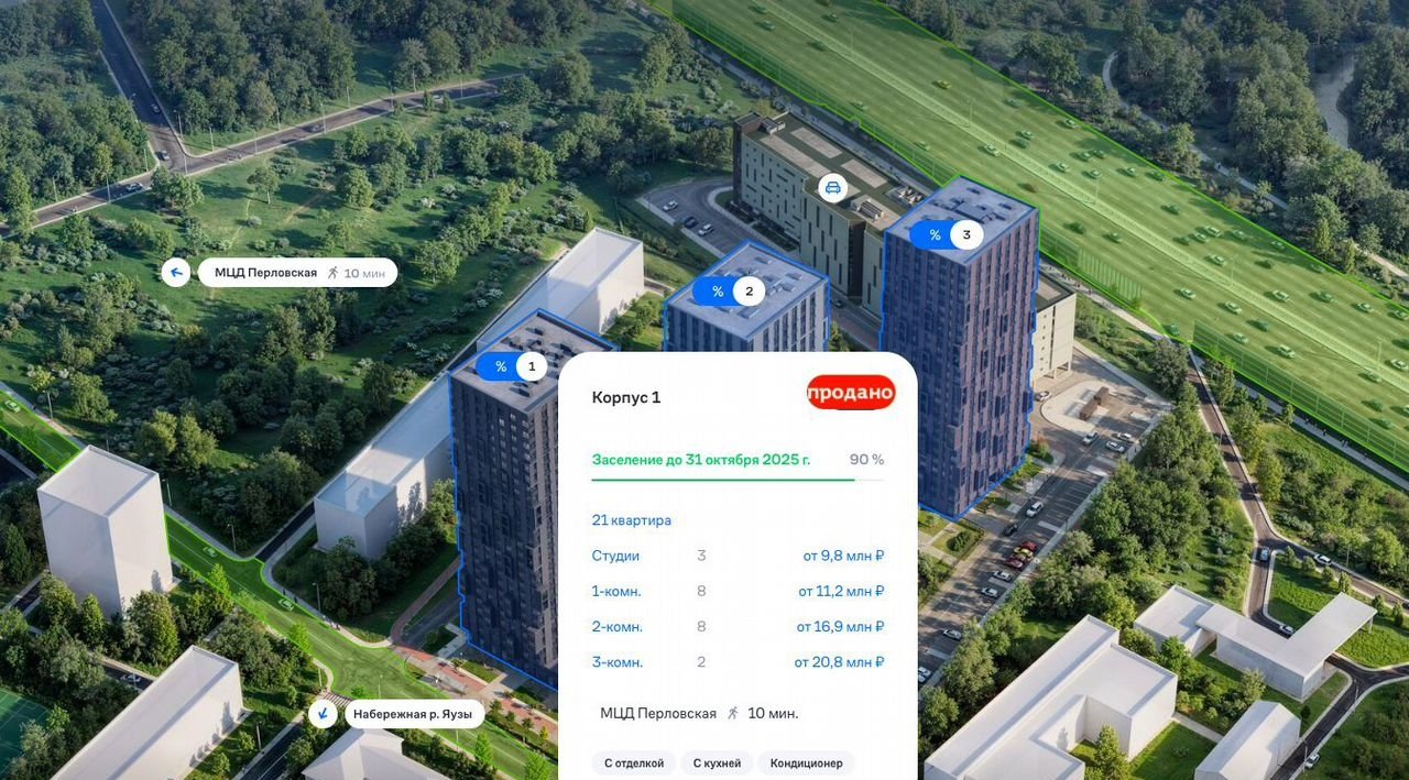 Адрес: Московская область, Мытищи, микрорайон Перловка, жилой комплекс Долина Яузы, 1