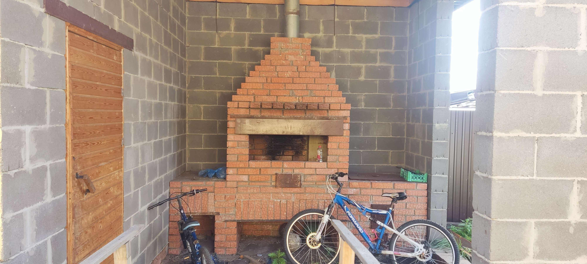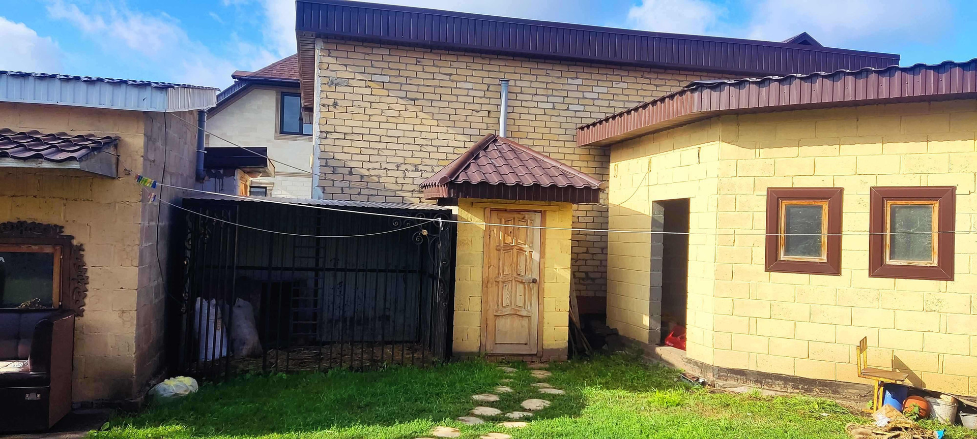 Есть баня на дровах ( печь чугунная) , Есть вольер для собаки, уличный туалет, хозблок совмещённый с курятником и пергалой для прогулки кур.