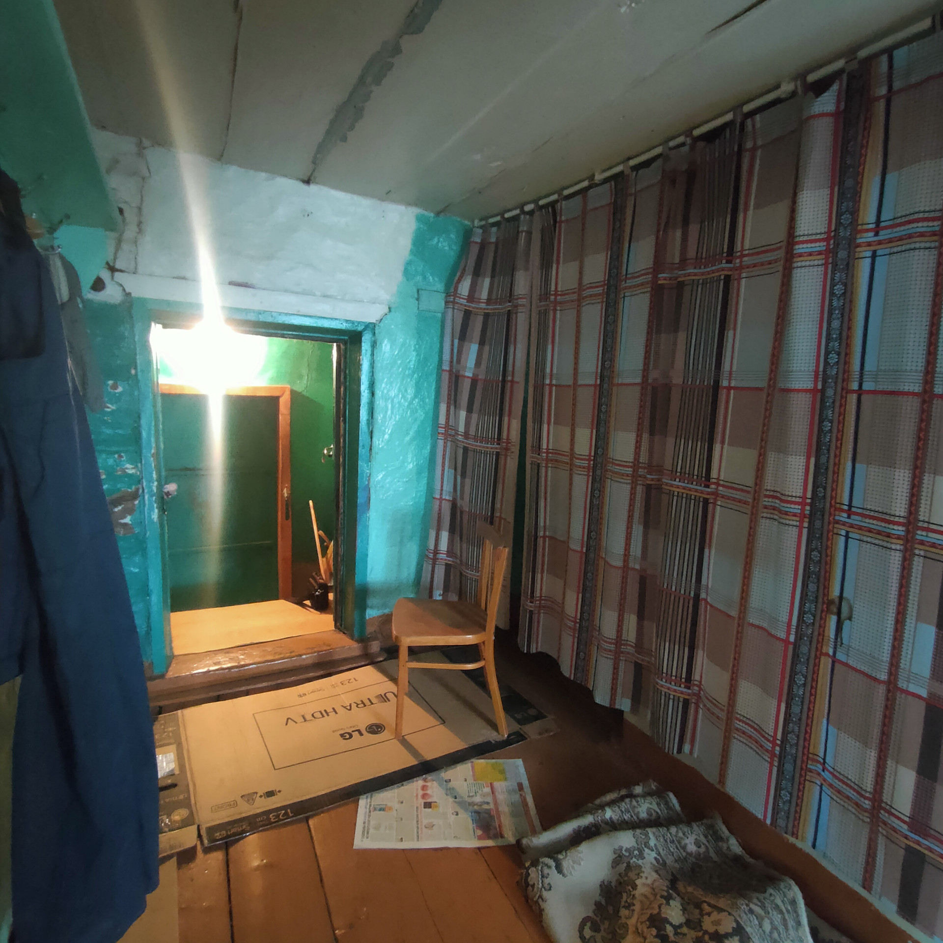 3 комнаты, кухня, тамбур и большая кладовая.