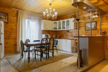На первом этаже находятся: Тамбур,гардеробная, прихожая, санузел, огромная гостиная, большая кухня-столовая.