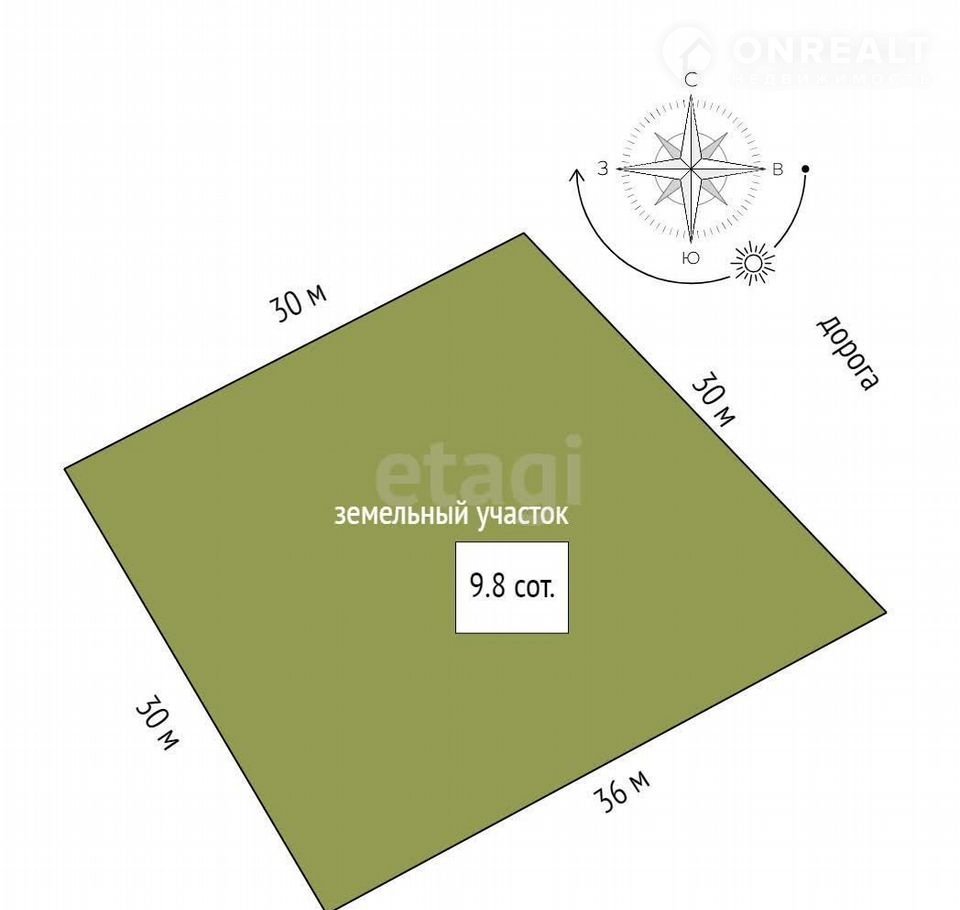 Площадь участка 9.8 сот.