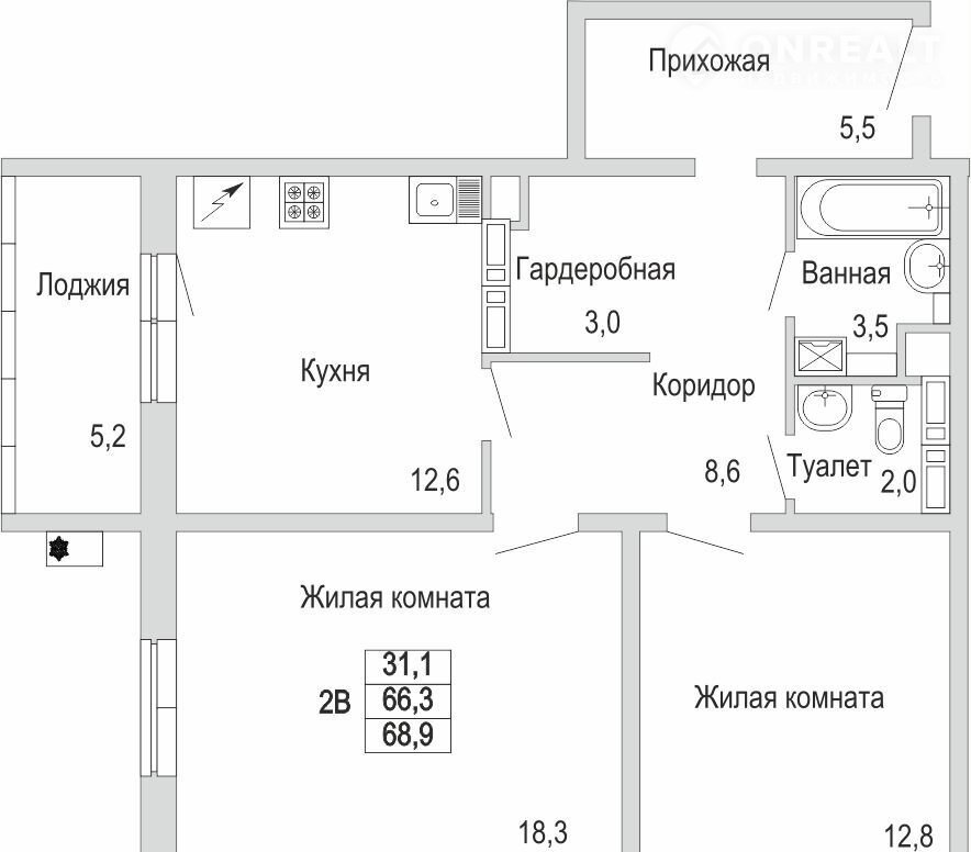 Общая площадь 68.9 м2