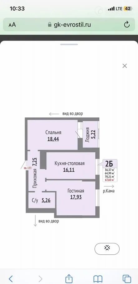 Общая площадь 63 м2