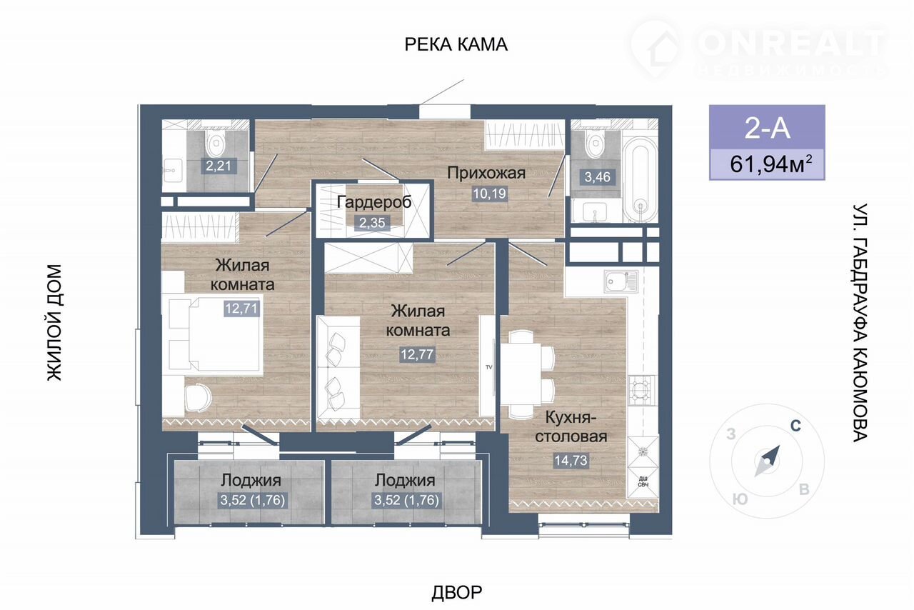 2-комнатная квартира, 65.5 м2, этаж 1 / 7, на продажу в Набережных Челнах