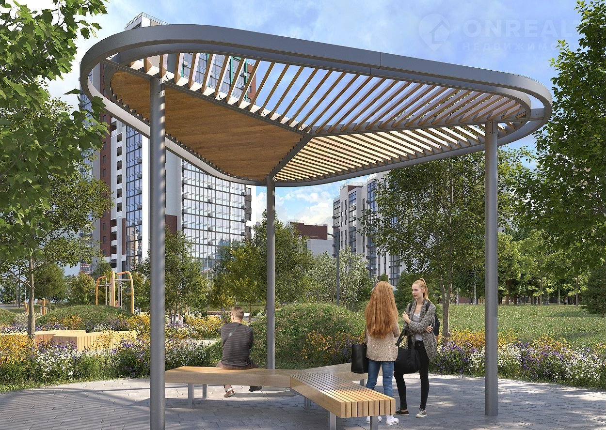 Также проектом предусмотрены собственный уютный сквер для неспешных прогулок, отдельная зона для выгула собак, многоуровневый паркинг и нежилые помещения для размещения магазинов, кафе, офисов с различными видами услуг.