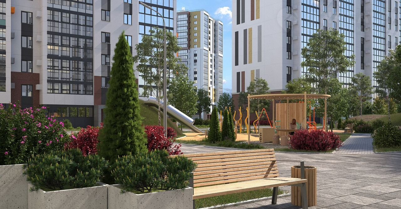 Основной точкой притяжения станет авторское благоустройство дворовой территории: обширные зеленые зоны для отдыха, центральная площадь для проведения культурных мероприятий, эко- детские и спортивные площадки для детей.