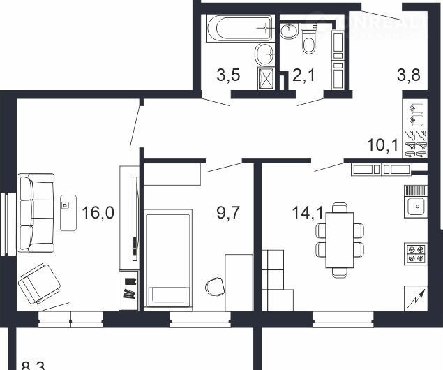 Общая площадь 63.5 м2