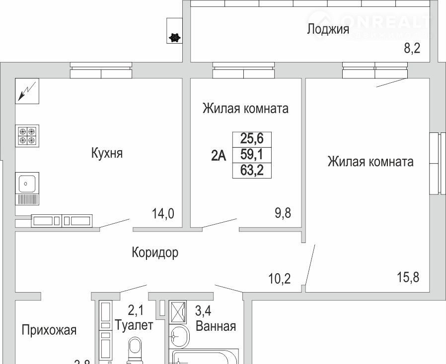 Общая площадь 63.2 м2