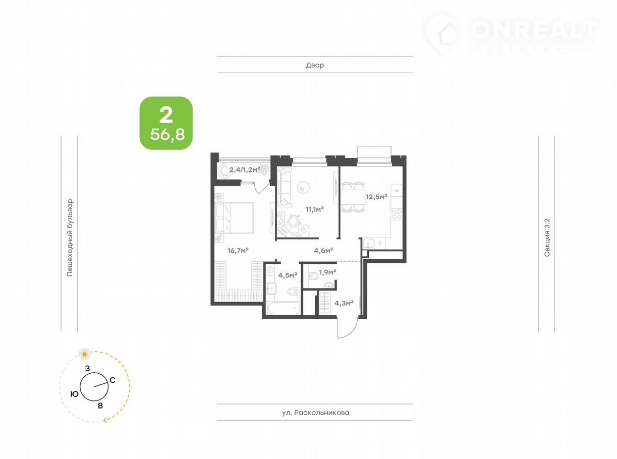 Количество комнат 2