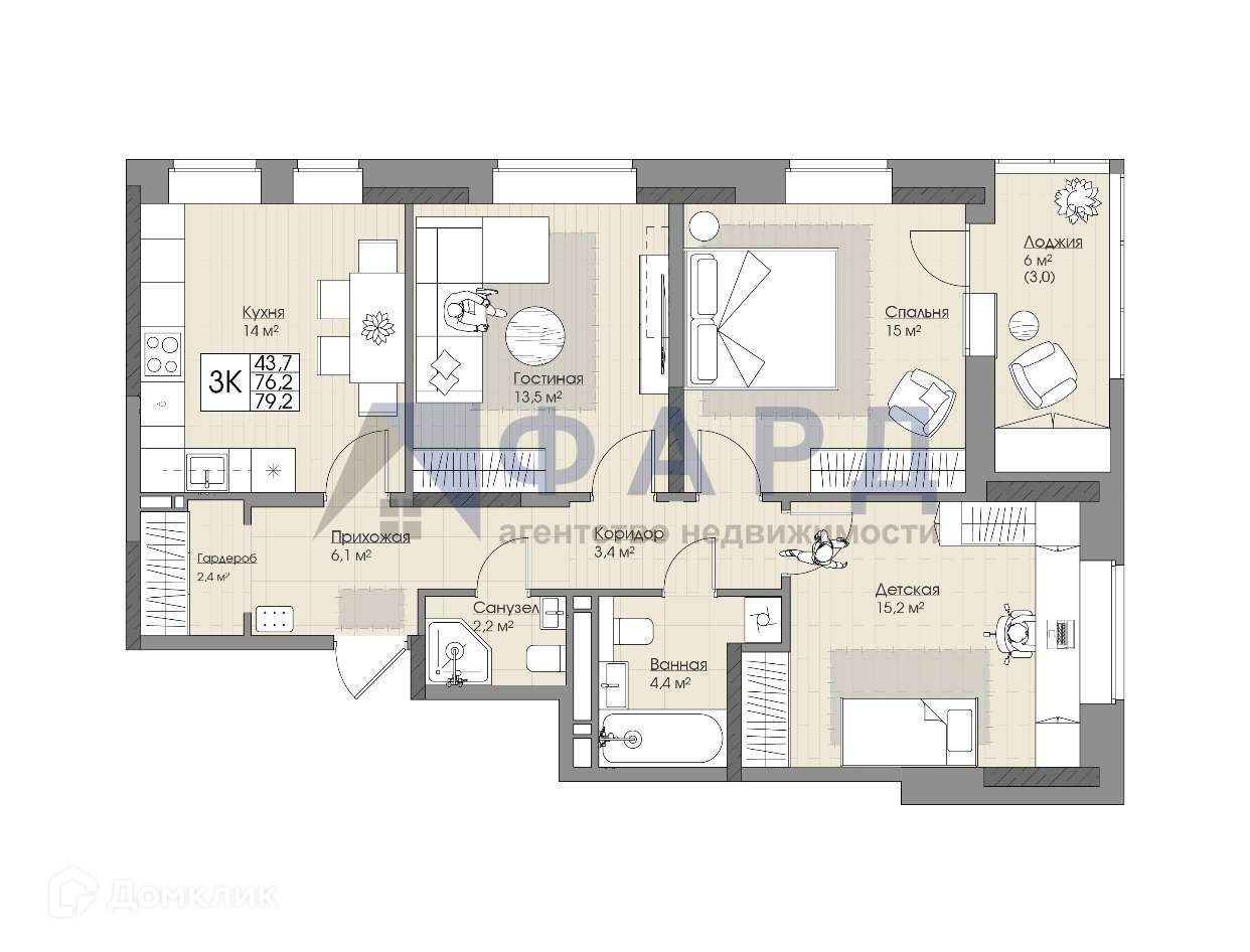 Общая площадь 79.2 м2