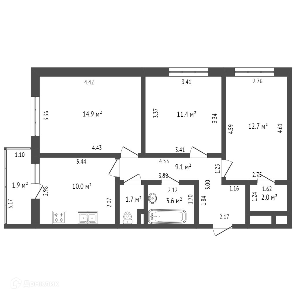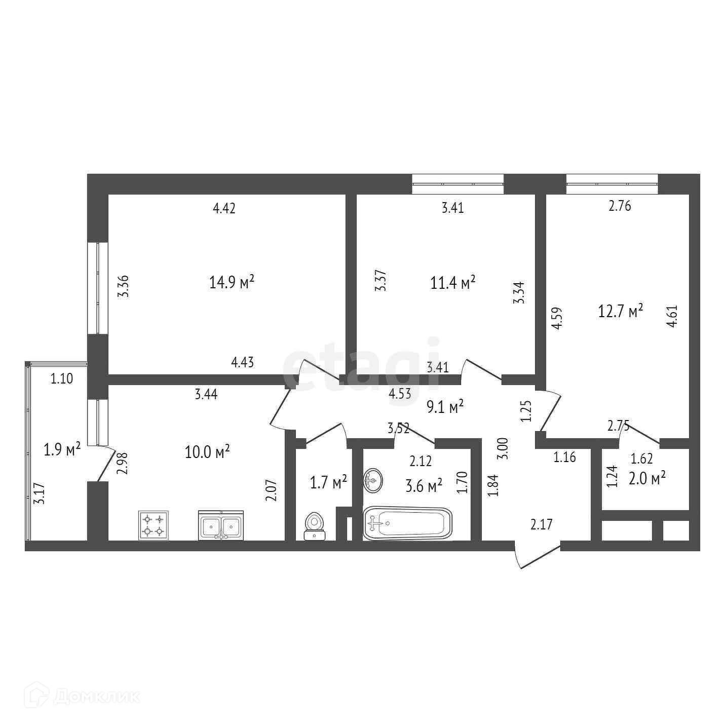Общая площадь 69 м2