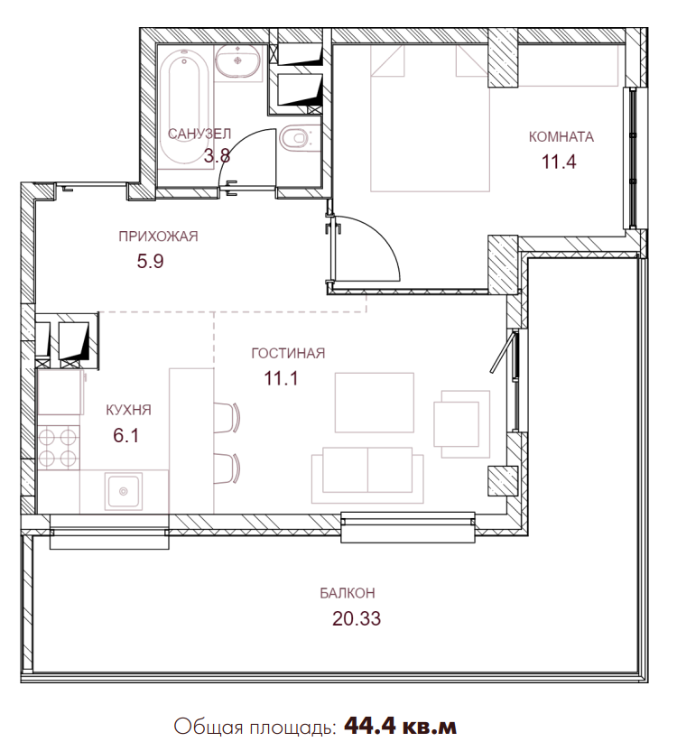 Жилая площадь 20.6 м2